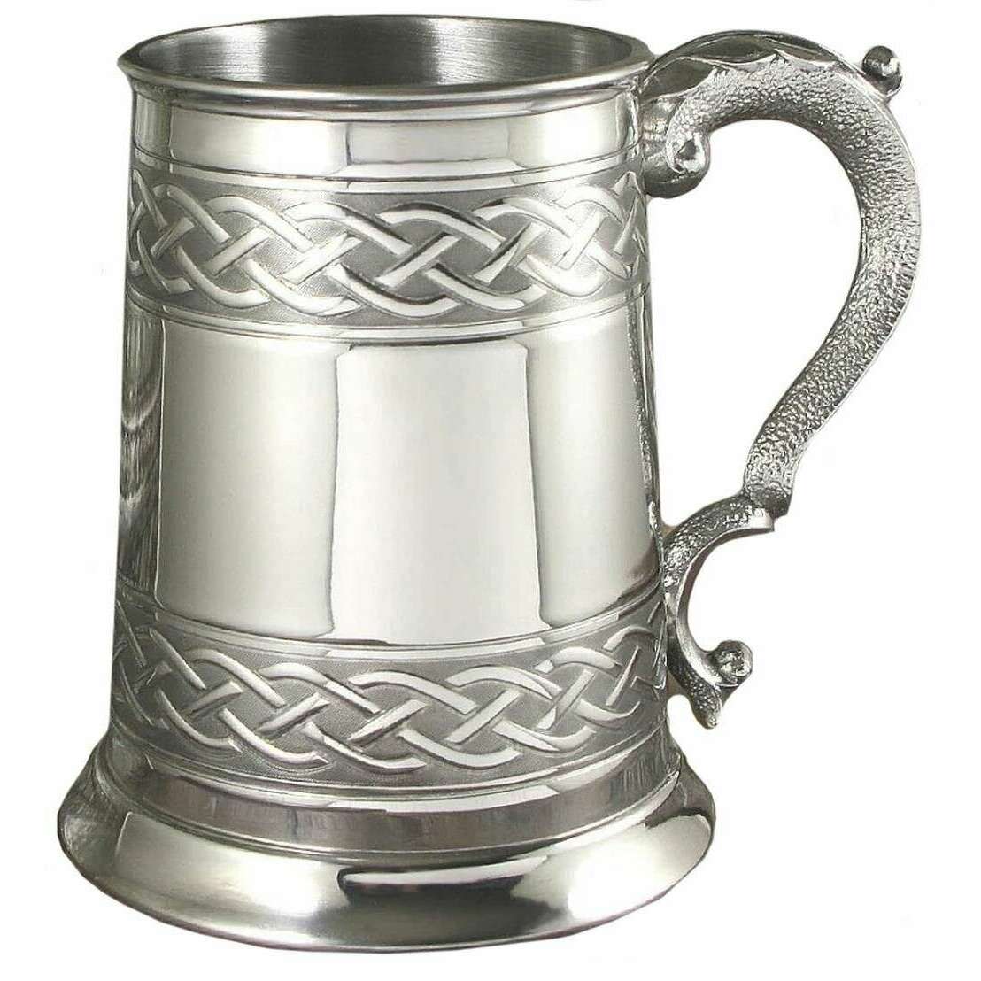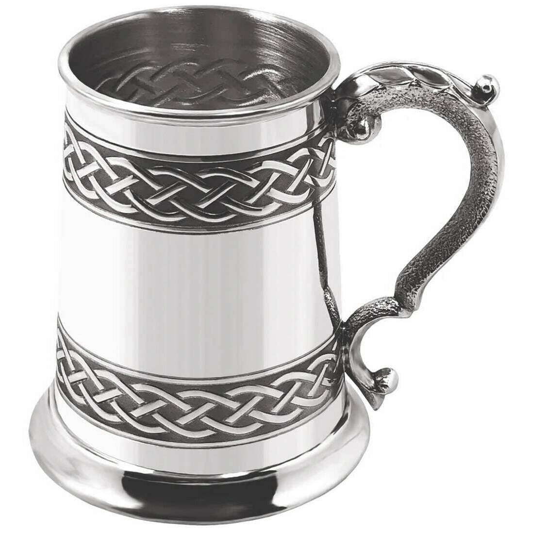 Engelsk Pewter Company 1pt Mæglet Celtic Band Tankard - Sølv