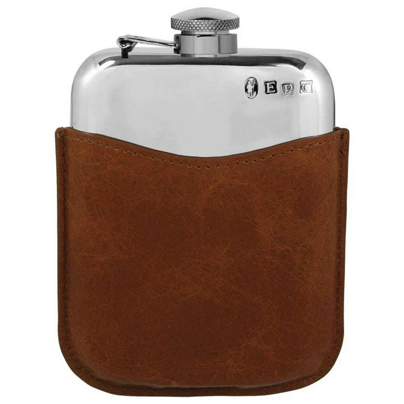 Engelsk Pewter Company 6oz Captive Top Purse Flask and Pouch - Silver/Brown