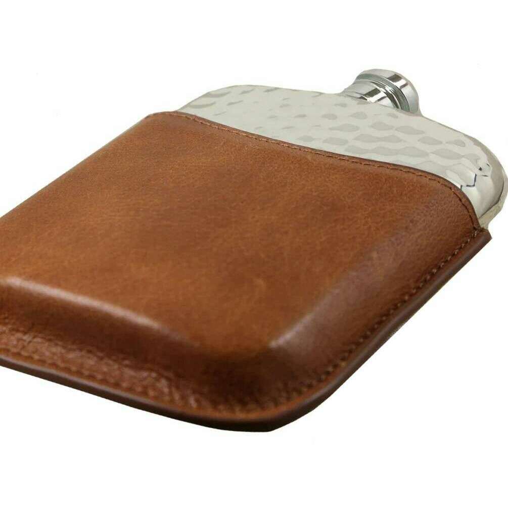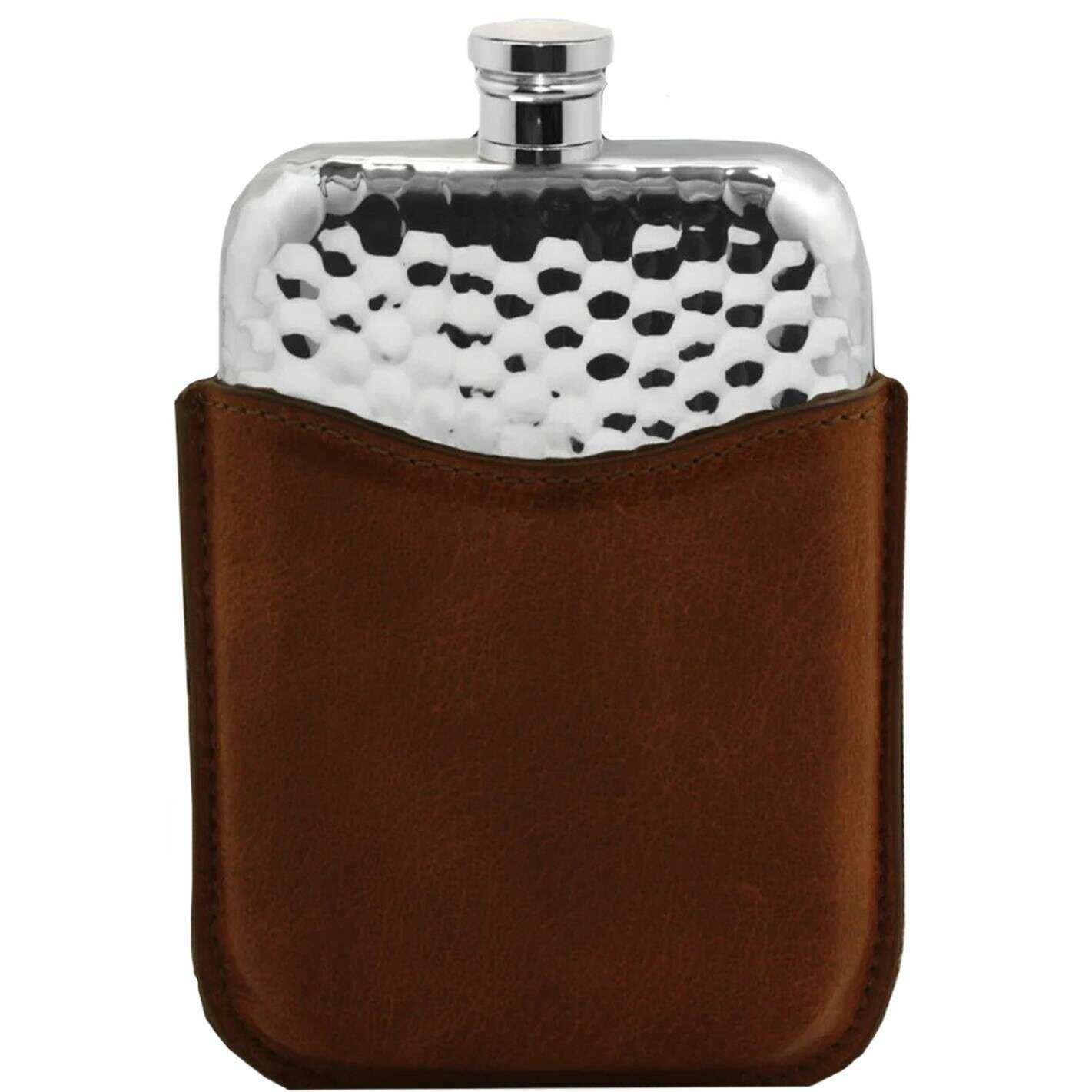 Engelsk Pewter Company 6oz hamret pungekolbe og pose - sølv/brun