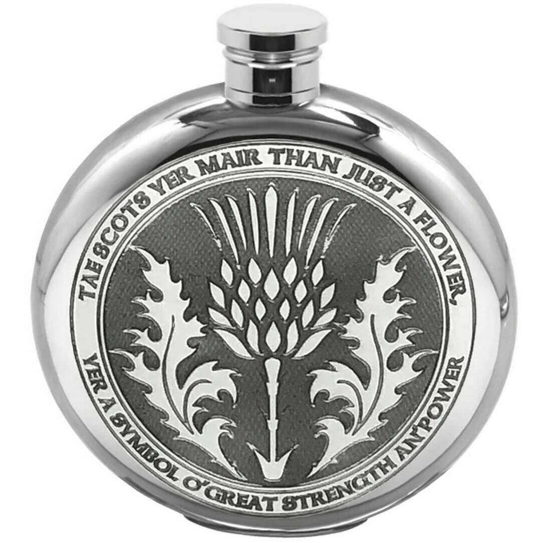 Engelsk Pewter Company 6oz Tae En tistel rund kolbe - Sølv