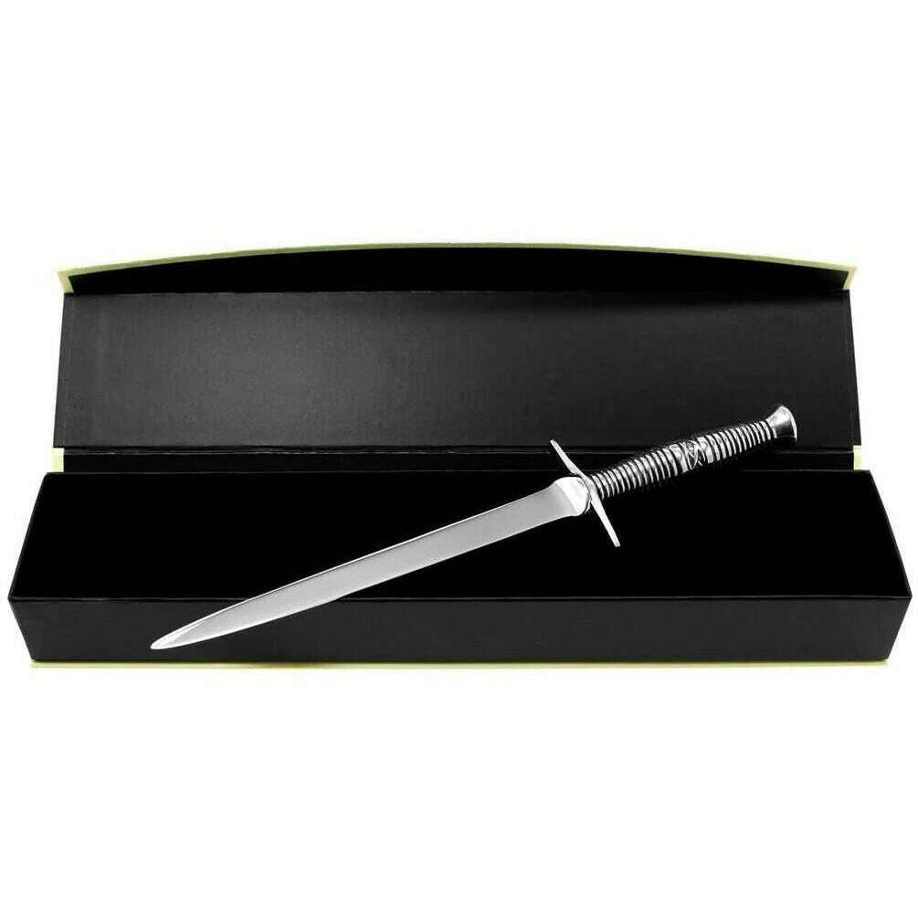 Perfekt til mænd eller kvinder er dette engelske tinfirma Silver Celtic Sword Letter Opener, det er også lavet af tin. Det måler 21,25 cm (højde). Alt skrivebordstilbehør kommer komplet i en engelsk tindfirma -gaveæske. Det engelske Pewter Company Celtic Sword Letter Opener - Silver er et ideelt tilbehør at skulle aflevere, når det kommer til at åbne din mail, hvilket giver dig et rent snit snarere end de un -even rips, du får, når du bruger dine fingre. Det er en meget lettere metode, der gør opgaven meget mere effektiv.