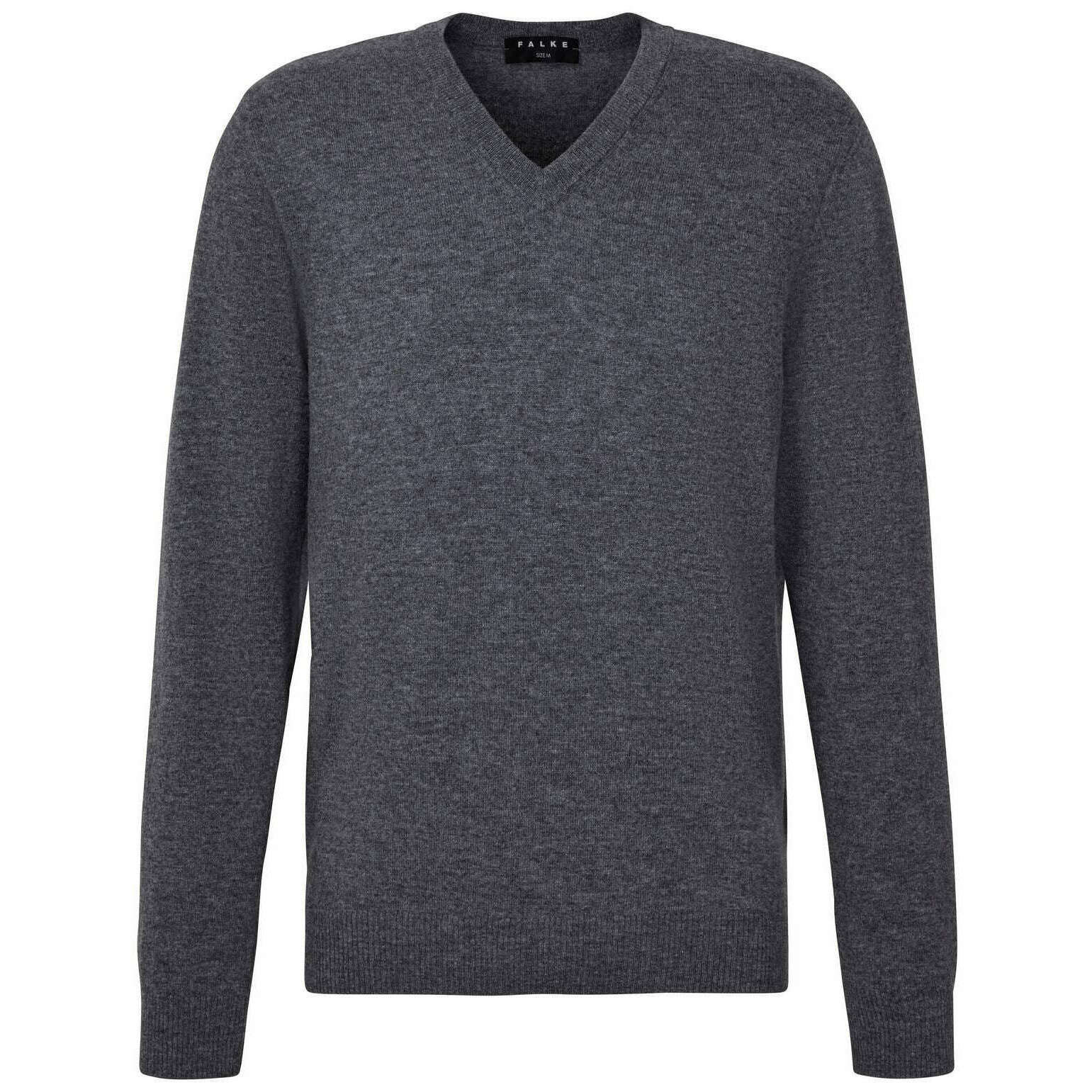 Falke lammeuldstrøje med V-hals - Heather Dark Grey