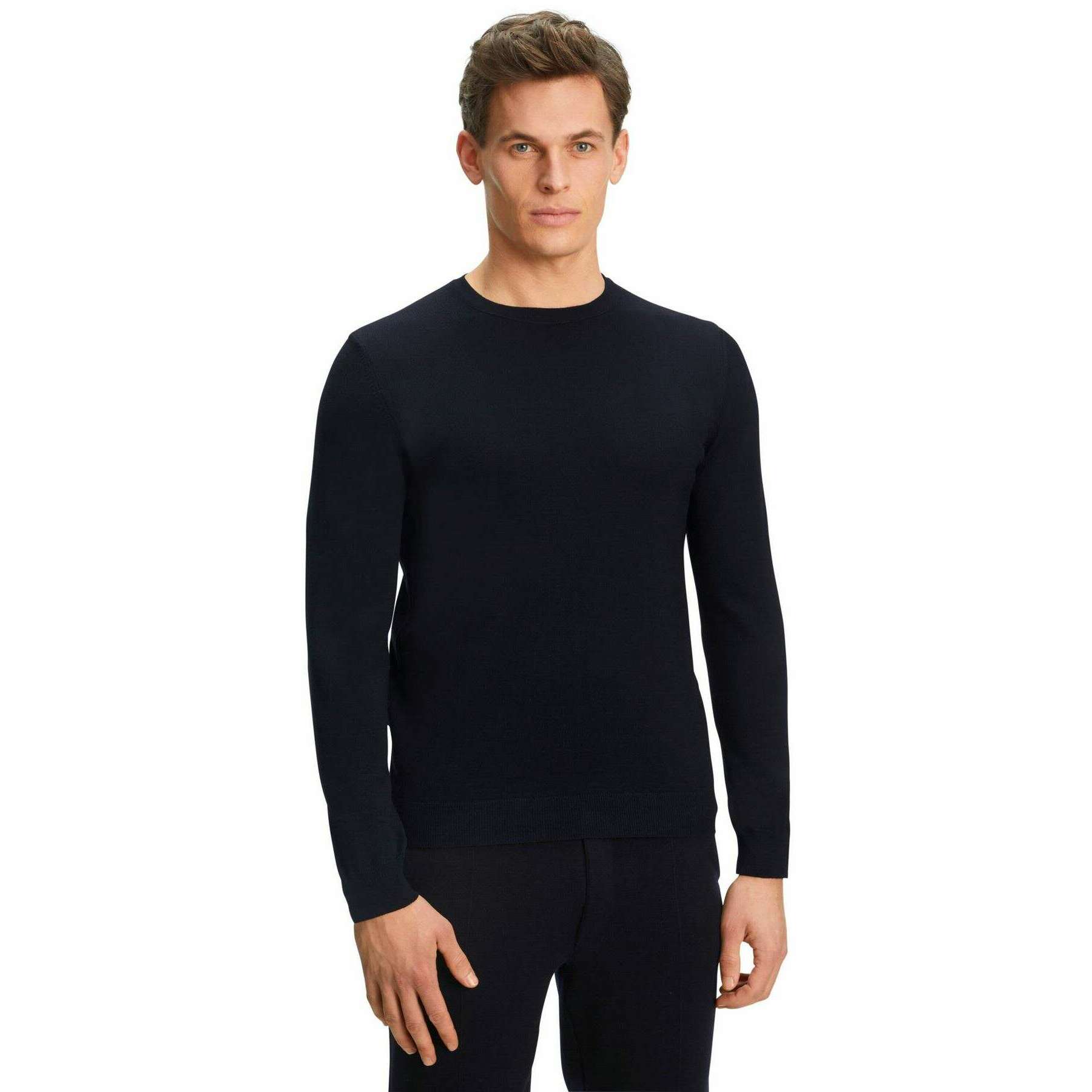 Falke Merino X-Fine sweater med rund hals - Night Sky Navy