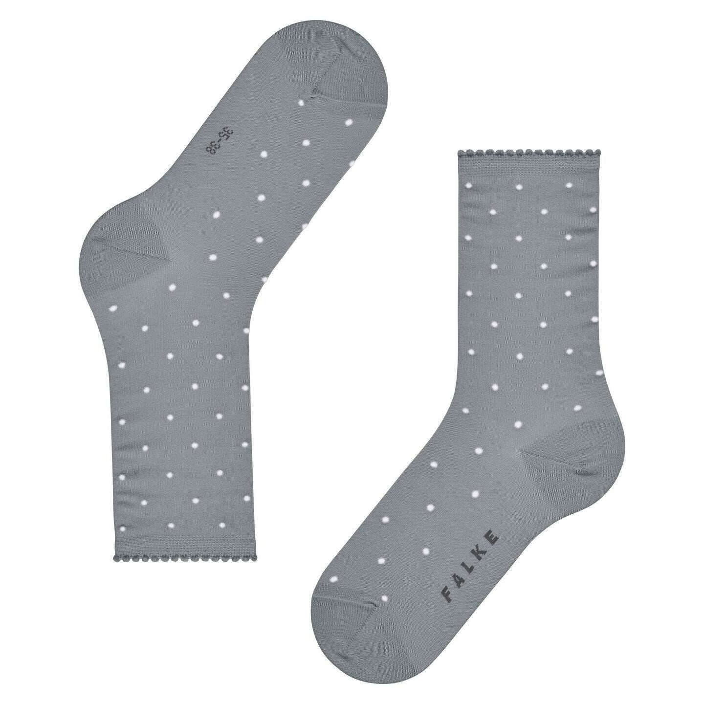 Vi introducerer disse kvinders spidsprikkede sokker fra Falke, de er fremstillet af 85% bomuld, 10% polyamid, 4% rayon og 1% elastan i en sølvfarve. Også sølvstrømperne er designet i et plettermønster, Det anbefales at vaske ved 30 grader for at holde disse sokker i god stand. Alle sokkerne kommer komplet med falske tags. Falke Spike Dot Socks - Sølv kombinerer et feminint prikdesign med den hudvenlige komfort fra FALKE WE CARE COTTON. Deres fine, kontrasterende prikker skaber et tidløst og elegant look, hvilket gør dem til et alsidigt tilbehør, der komplementerer både casual og smarte outfits. Den let flæsede manchet fremhæver deres feminine appel, mens den glatstrikkede baggrund giver en raffineret finish. Fremstillet af bæredygtig, merceriseret økologisk bomuld afspejler de FALKEs forpligtelse til ressourcebesparelse, socialt ansvarlige og sporbare materialer. Forstærkede stresszoner sikrer varig holdbarhed, og signaturen FALKE Perfect Fit garanterer enestående komfort hele dagen. Disse sokker kombinerer bæredygtig bomuldskomfort og moderigtigt design, og tilbyder et stilfuldt og ansvarligt valg til hverdagsbrug.