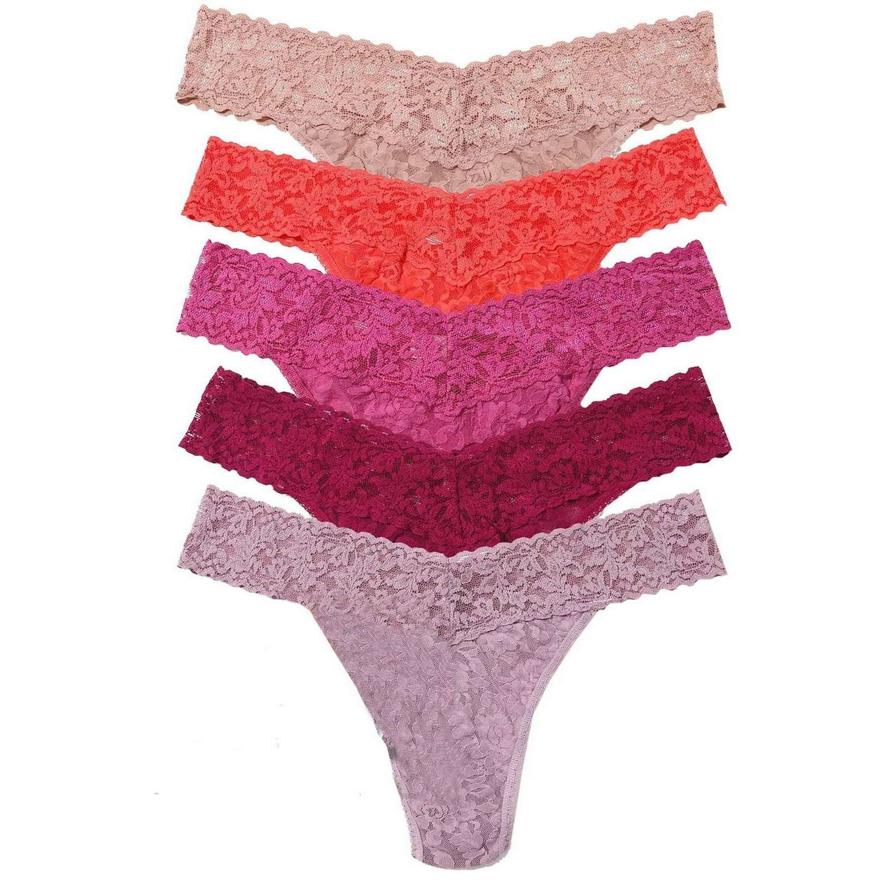 Hanky Panky Signature Lace Original Rise 5-pak strop - Desert Rose/Neon Coral/Bright Ametyst