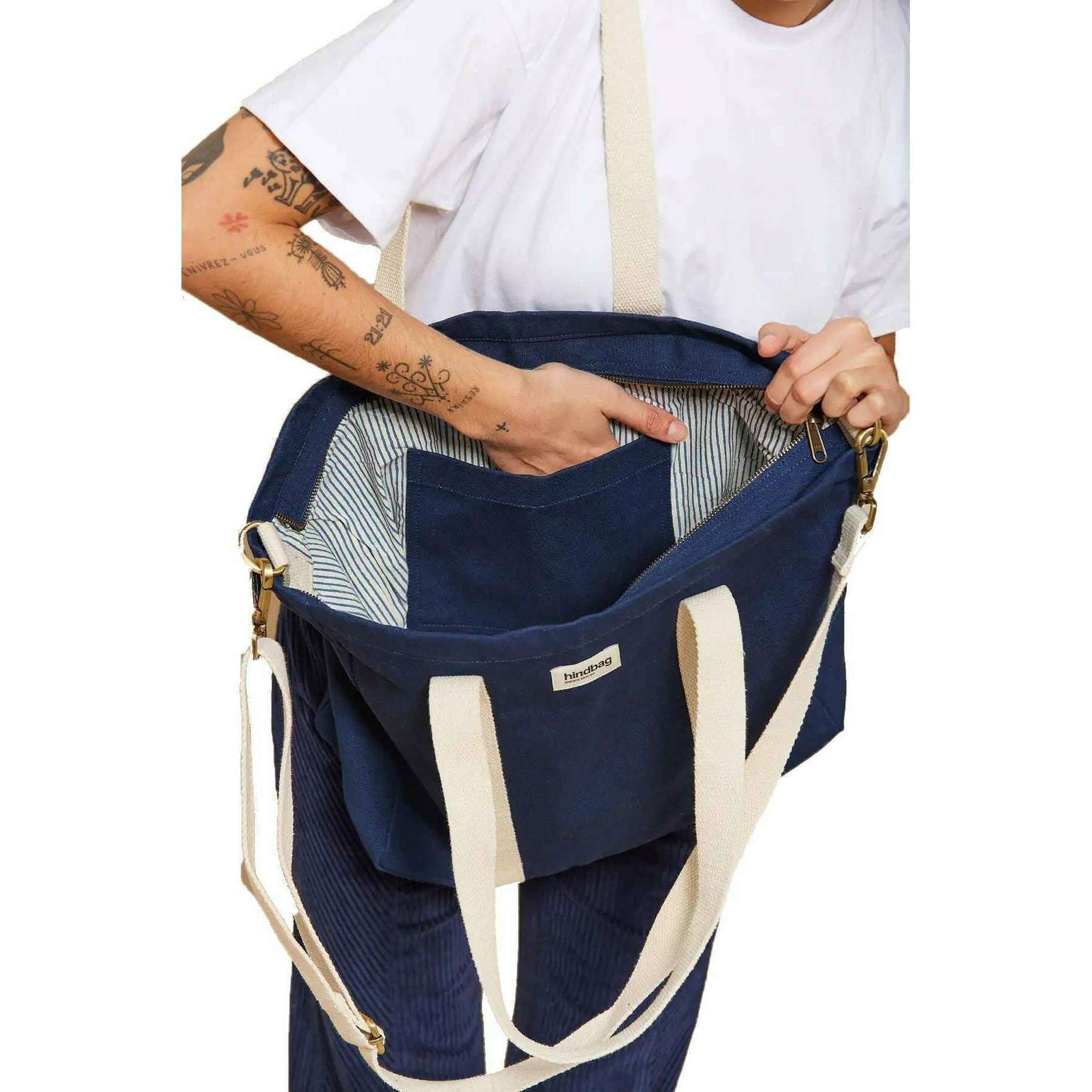 Denne unisex cesar lille totalpose er lavet af 100% organisk bomuld, vist i en blå farve og er fra mærket bagposen. Det måler 33 cm (højde) x 51 cm (bredde) x 14 cm (dybde). Alle poser leveres komplet med bagefter emballage. Hindpos Cesar Small Tote Bag - Navy Blue er en alsidig og miljøbevidst tilbehør designet til daglig brug. Denne tote er udformet af tyk, gots-certificeret organisk bomuld og kombinerer holdbarhed med bæredygtighed. Det rummelige interiør gør det ideelt til at bære essentielle ting, herunder en mellemstor bærbar computer i en Ava-sag. Med en sikker lynlåselukning og en indre lomme til organisering giver design af denne taske mulighed for flere bæremuligheder, over skulderen, over kroppen eller for hånd, catering til forskellige præferencer.