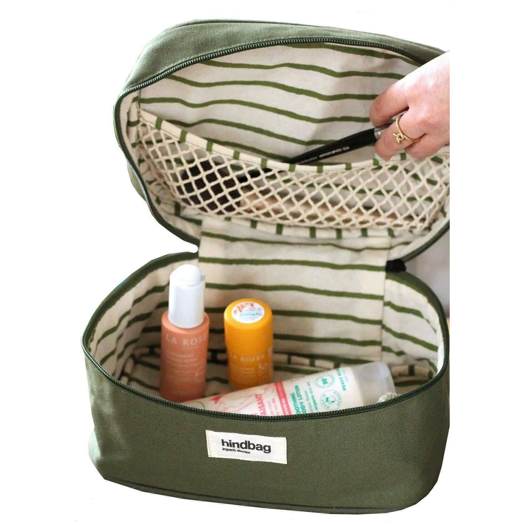 Denne unisex gaspard forfængelighedstaske er lavet af 100% organisk bomuld, vist i en grøn farve og er fra mærket Hindbag. Det måler 13,5 cm (højde) x 16 cm (bredde) x 25 cm (dybde). Alle poser leveres komplet med bagefter emballage. Hindpack Gaspard Vanity Bag - Olive Green tilbyder både rejsende og hverdagsbrugere en praktisk og stilfuld måde at holde deres toiletartikler organiseret og tilgængelig. Det indvendige net er perfekt til pænt at arrangere toiletartikler, kosmetik og andre personlige genstande. Fås i en række farver, dette moderigtige tilbehør repræsenterer en harmonisk fusion af funktionalitet og æstetik, der serverer dem, der værdsætter både stil og praktisk på deres rejse.