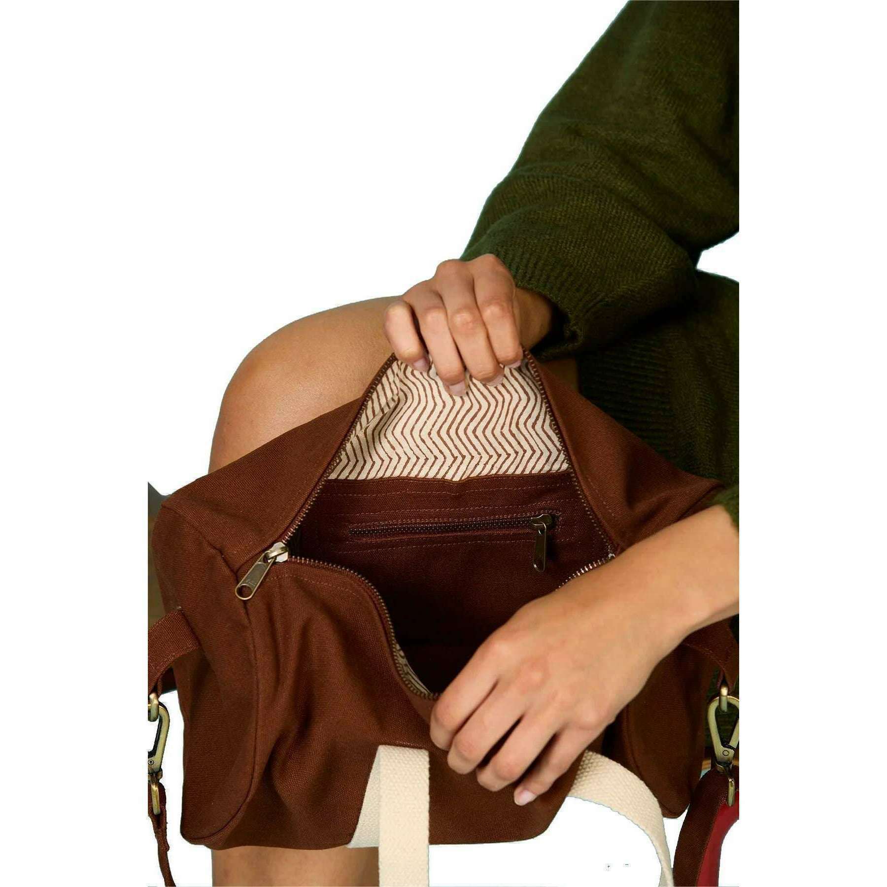 Ved hjælp af brun 100% organisk bomuld er denne mini Simon lille duffle -taske af Hindbag perfekt til mænd eller kvinder og et must have. Det måler 18 cm (højde) x 35 cm (bredde) x 18 cm (dybde). Alle poser leveres komplet med bagefter emballage. Hindbag Mini Simon Small Duffle Bag - Chocolate Brown er en alsidig og miljøbevidst rejsekammerat designet til dem, der søger funktionalitet uden at gå på kompromis med stil. Med en ydre lynlås lomme og justerbar skulderrem til komfort, giver denne duffel taske rigelig plads til væsentlige ting, mens den opretholder en slank profil, hvilket gør den ideel til weekendferie, gymnastiksessioner eller daglige pendler.