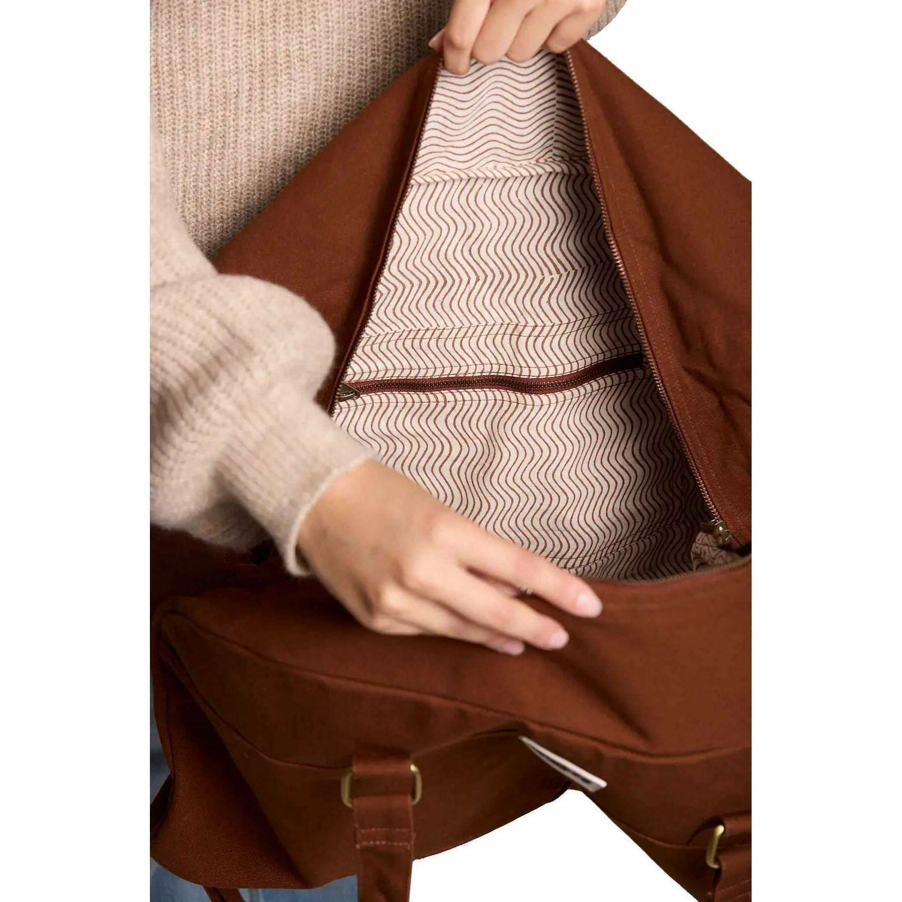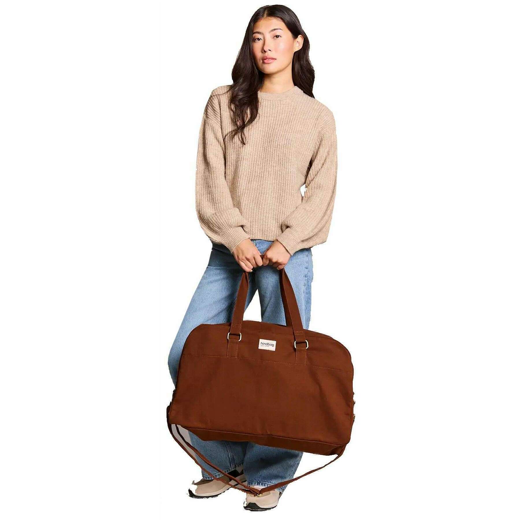 Denne unisex yves stor rejsepose er lavet af 100% organisk bomuld, vist i en brun farve og er fra mærket Hindbag. Det måler 33 cm (højde) x 54 cm (bredde) x 24 cm (dybde). Alle poser leveres komplet med bagefter emballage. Den store rejsetaske - Chocolate Brown er en rummelig og miljøvenlig mulighed for rejsende. Denne taske er udformet af tyk, Gots-certificeret organisk bomuld og har flere lommer til organisering, en sikker lynlås lukning og en trykt indre foring, der tilføjer et strejf af elegance. Med sine håndtag og store justerbare skulderrem kan denne taske let bæres med hånden eller på skulderen.