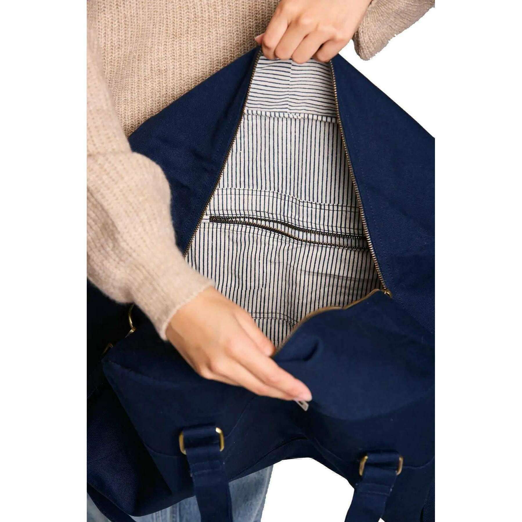 Denne Yves store rejsetaske til mænd eller kvinder er udformet af mærket Hindbag i en blå farve og er lavet af 100% organisk bomuld. Det måler 33 cm (højde) x 54 cm (bredde) x 24 cm (dybde). Alle poser leveres komplet med bagefter emballage. Den store rejsetaske - Navy Blue er en rummelig og miljøvenlig mulighed for rejsende. Denne taske er udformet af tyk, Gots-certificeret organisk bomuld og har flere lommer til organisering, en sikker lynlås lukning og en trykt indre foring, der tilføjer et strejf af elegance. Med sine håndtag og store justerbare skulderrem kan denne taske let bæres med hånden eller på skulderen.