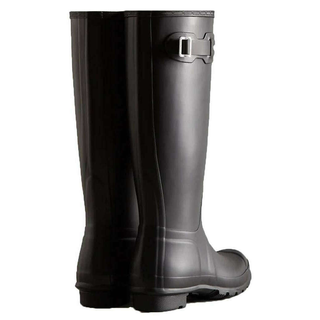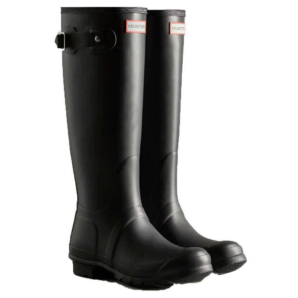 Disse originale høje wellingtonstøvler til kvinder af mærket Hunter er lavet af 100% gummi og fremvises i sort. Alle wellington-støvlerne leveres komplet med jægeremballage. Hunter Original Tall Wellington-støvler - Sort er en kernestil i Hunter-kollektionen, der tilbyder pålidelig beskyttelse siden dens introduktion i 1956. Hvert par er håndlavet af 28 håndskårne naturgummidele, samlet over tre dage på en skræddersyet aluminiumslæst og vulkaniseret for overlegen vandtæt ydeevne. Støvlen er designet med en mat finish og inkluderer Hunter Original slidbanemønster sammen med en opdateret genanvendt polyesterfor og indersål for ekstra komfort. Specielt udviklet til at afvise vand og forhindre fugtindtrængning, denne certificerede veganske støvle er et vigtigt valg til vådt vejr.