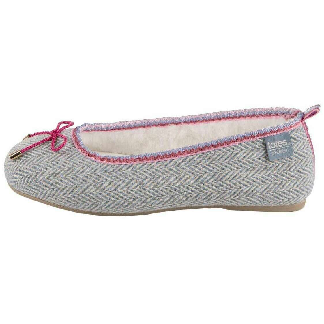 Disse sildebensballetsko til kvinder af mærket Isotoner er lavet af 100% polyester og fremvises i grå. Også de grå hjemmesko er designet i et sildebensmønster. Det anbefales ikke at vaske og tørre af med en fugtig klud for at holde disse hjemmesko i god stand. Alle hjemmesko kommer komplet med isotoner emballage. Isotoner Herringbone Ballet Slippers - Grå er et must have i enhver dames kollektion. Perfekt til at gå rundt i huset med stil og ekstra støtte, varme og komfort fra pudetrinspolstringsteknologien til underfodsdæmpning, tilføjet memoryskum og en slidstærk sål. Det åbne design forhindrer dine fødder fra overophedning og efterlader en åndbar fornemmelse. Færdig med en piget pink sløjfe, trimdetaljer og et sildebensdesign for at fuldende dette smukke par.