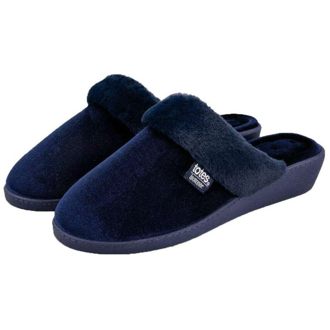 Isotoner Sparkle Velour Heeled Mule Hjemmesko - Navy