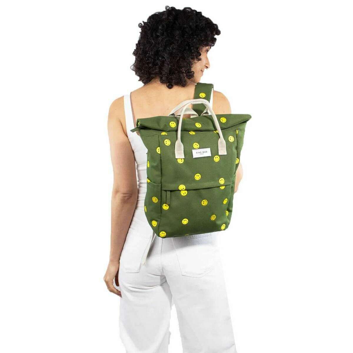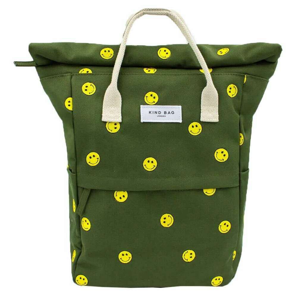 Venlig taske London Hackney broderet medium rygsæk - Khaki grønt smil