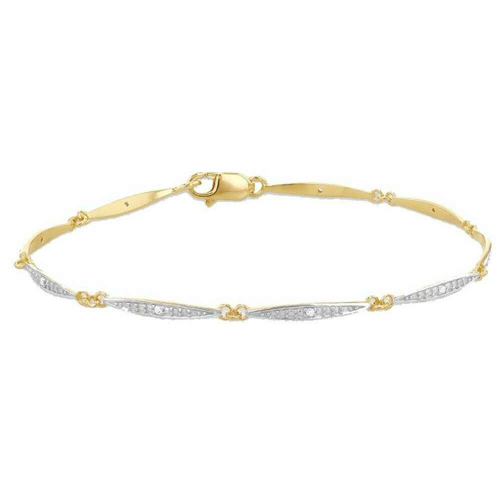 Dette kvinders 0,04 karat laboratorieskabte diamantstangsarmbånd af mærket KJ Beckett er lavet af sterling sølv og fremvises i klar. Alle armbåndene leveres komplet med emballage. KJ Beckett 0.04ct Lab-skabt diamantstangarmbånd - guld/klart er et slankt og underspillet, elegant bararmbånd skabt til en tidløs glød. Laboratoriet skabte diamanter skaber en subtil gnist, der løfter dette armbånd uden at overdøve det. Dette armbånd er designet til at sidde behageligt og er perfekt til hverdagsbrug eller en tankevækkende gave med mening.