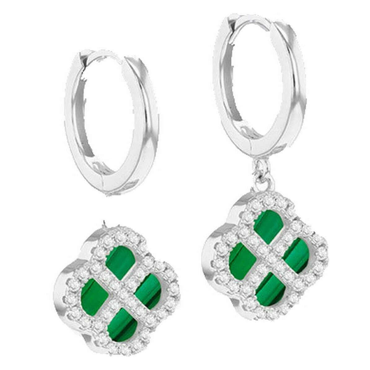 Disse malakit-kløver-ringe-øreringe til kvinder af mærket KJ Beckett er lavet af sterling sølv og fremvist i grønt. Alle øreringe leveres komplet med emballage. KJ Beckett Malachite Clover Hoop Øreringe - Sølv/Grøn er en fejring af charme og elegance! Disse unikke øreringe i sterling sølv har en 11 mm malakit kløver charme parret med en funklende 1,1 mm cubic zirconia-accent ring, alle lavet af sterling sølv og afsluttet med slank rhodiumbelægning for varig glans og modstandsdygtighed over for anløbning. Disse lette, men alligevel iøjnefaldende bøjler er perfekte til hverdagsbrug og er en tankevækkende og stilfuld gave.