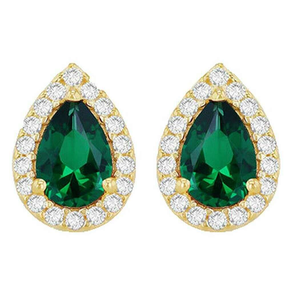 KJ Beckett Pæreformet Halo Stud Ørering - Gul Guld/Grøn