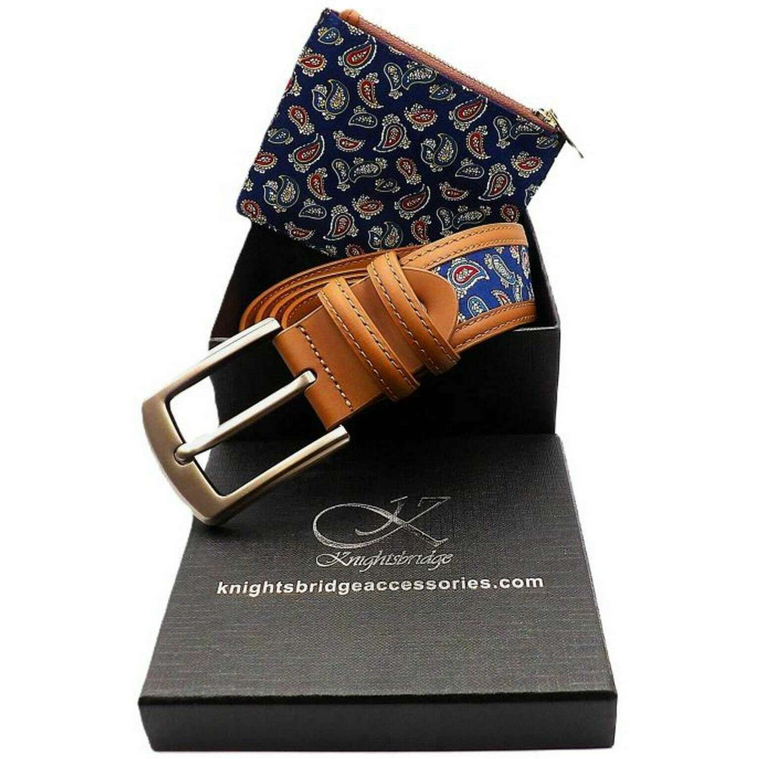 Knightsbridge Neckwear Belgravia Paisley Bælte- og tegnebogssæt - Tan Beige