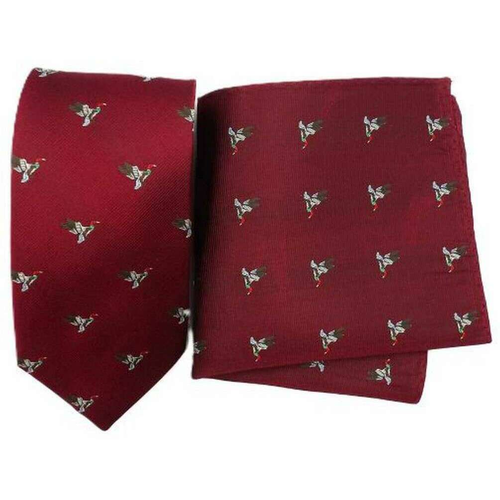 Knightsbridge Neckwear Duck Silk Tie og Pocket Square Set - Burgundy