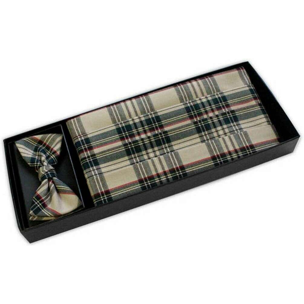 Knightsbridge Neckwear Tartan Cummerbund og butterfly sæt - Beige