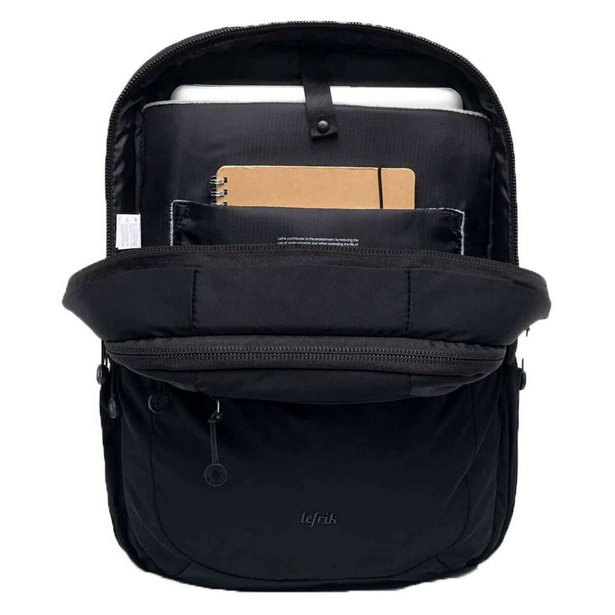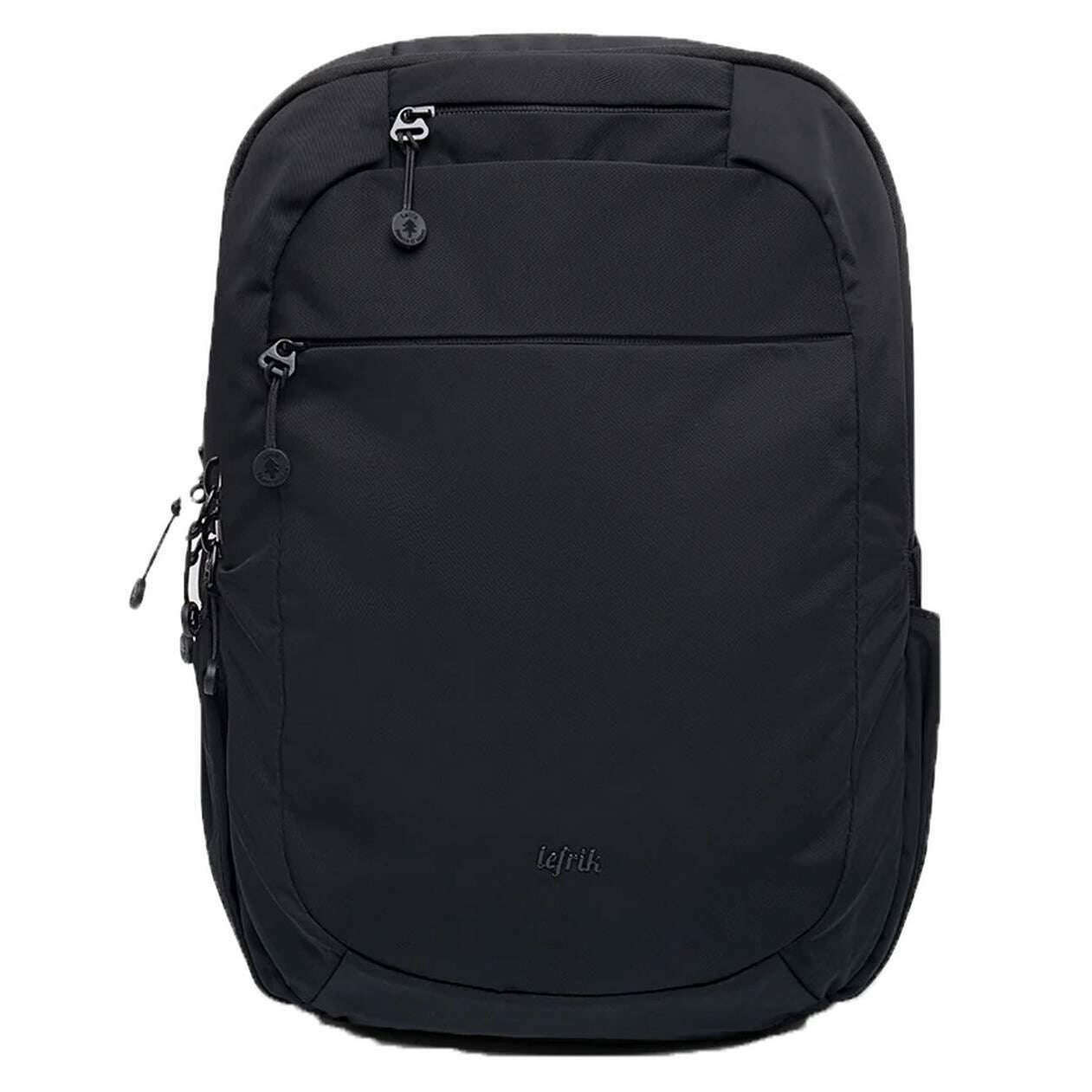 Designer Lefrik har bragt dig denne unisex 100 % ultra letvægts stoftaske med sorte toner. Den måler 40 cm (højde) x 25 cm (bredde) x 12 cm (dybde). Alle poserne leveres komplet med lefrik emballage. Lefrik 101 Rygsæk - Sort er et slankt, bæredygtigt og praktisk valg til daglig pendling og forretningsrejser. Denne rygsæk er lavet af genbrugsplastikflasker og har et hovedrum med polstret ærme, der kan rumme op til 15,6" bærbare computere, tablets og daglige ting. For effektiv organisering har denne taske to lynlåslommer med hurtig adgang, en på toppen og en på forsiden. Med polstret ryg og håndtag for komfort, kan denne rygsæk fastgøres til håndtaget på din rejsevogn.