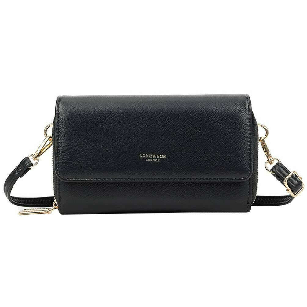 Perfekt til kvinder er denne Long and Son sorte pung crossbody taske, den er også lavet af 100% polyurethan. Den måler 12,5 cm (højde) x 20 cm (bredde) x 5 cm (dybde). Alle poserne kommer komplet med lang & søn emballage. Long and Son Purse Crossbody Bag - Sort er et must-have, hvis du bærer let. Med flere sektioner til dine mindre ejendele, seks kortholdere og et seddelrum for bekvemmeligheden ved ikke at skulle pakke en pung. Den lille og kompakte stil er fantastisk til letvægtsbrug, og den aftagelige justerbare rem giver mulighed for crossbody eller skulder, mens den også fungerer som en clutch. Komplet med subtil Long & Son branding.
