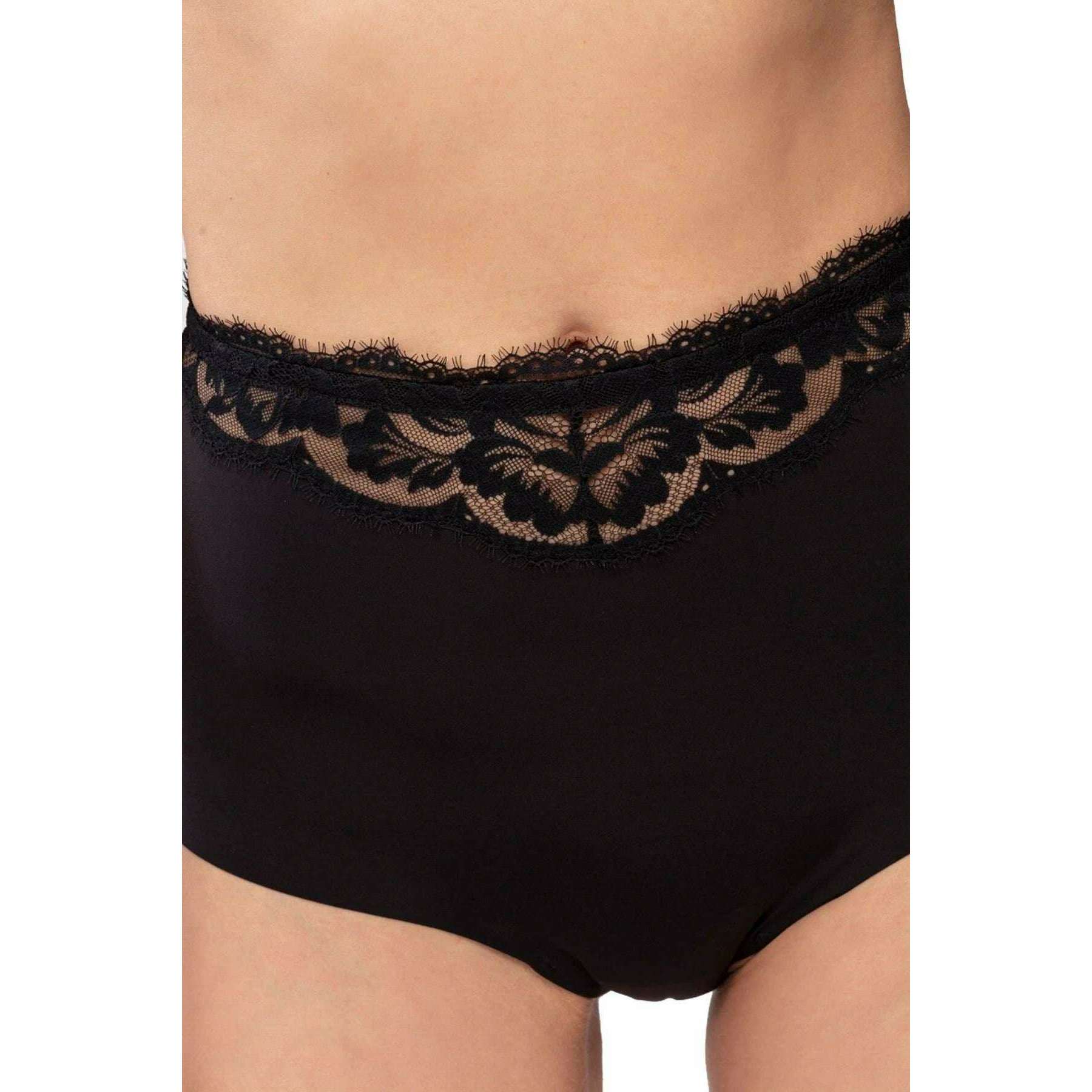 • Højtalje, bomuldsindsats på knusning, elegant blonder, bløde benåbninger