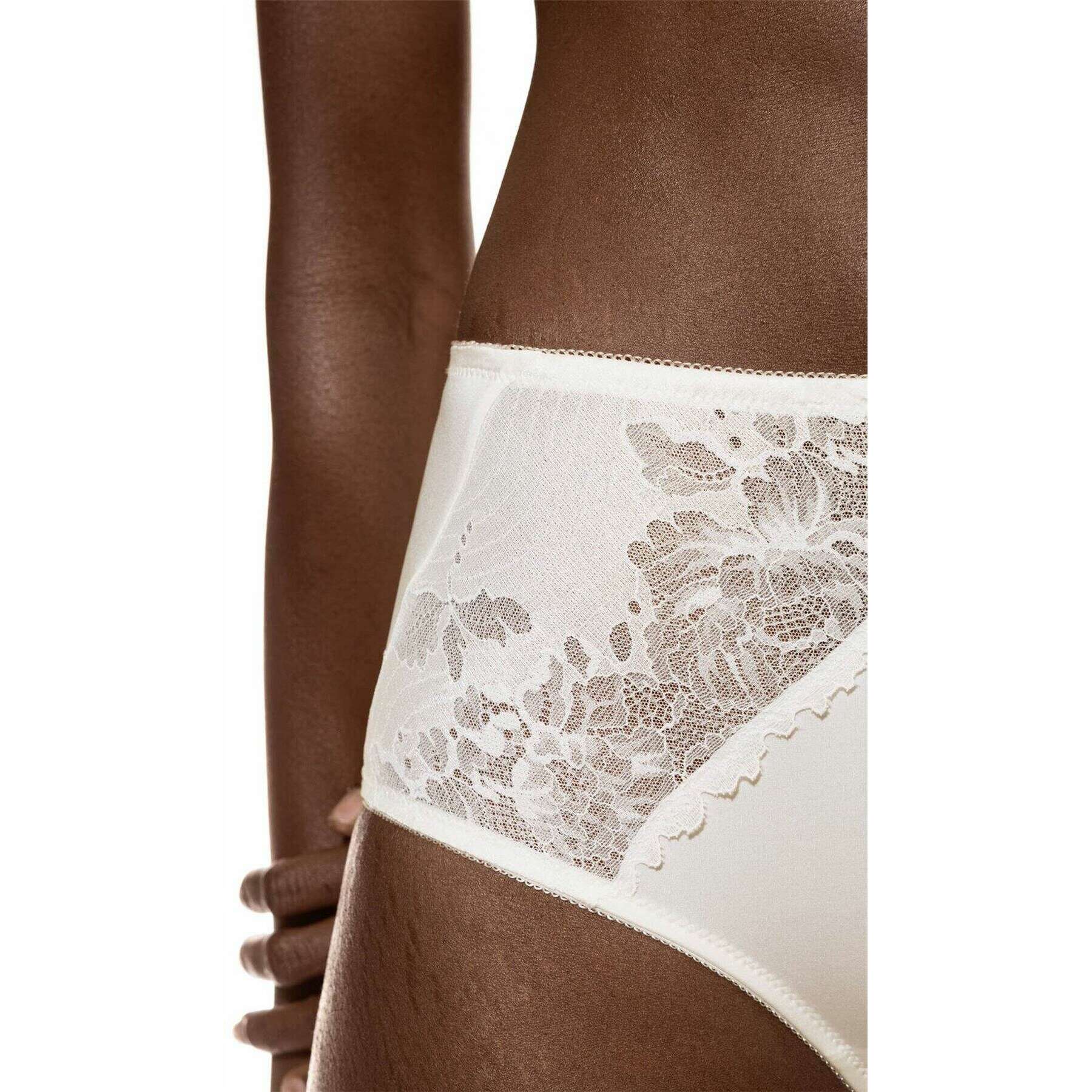 • OEKO-TEX Standard 100 , Højtaljet pasform , blondesider , flad linning , bløde benåbninger , bomuldsindsats på kile , tofarvet blonde , blid støtte