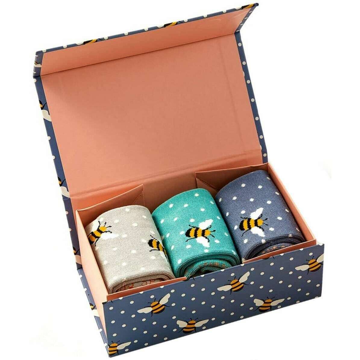 Miss Sparrow London 3 Pack Bumble Bee Sokkeboks - Grøn/Blå/Grå