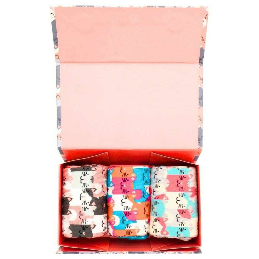 Miss Sparrow London 3 Pack Happy Cats strømpeboks - Pink/Blå