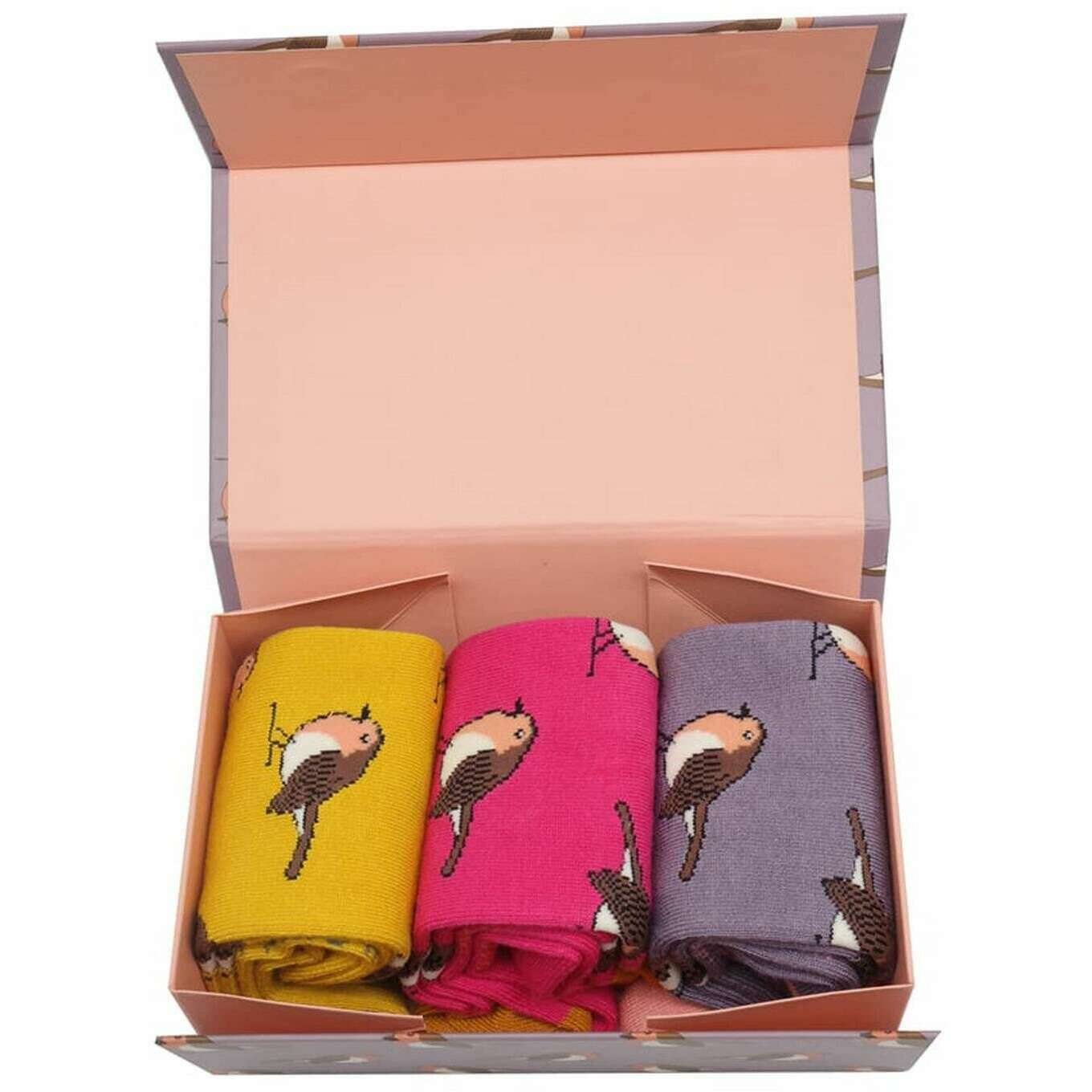 Miss Sparrow London 3-pak Robins sokkeæske - Pink/Gul/Lilla