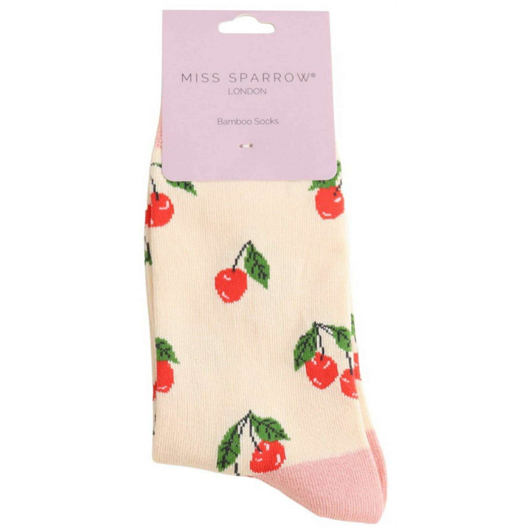 Miss Sparrow London Cherries Bamboo Socks - Creme