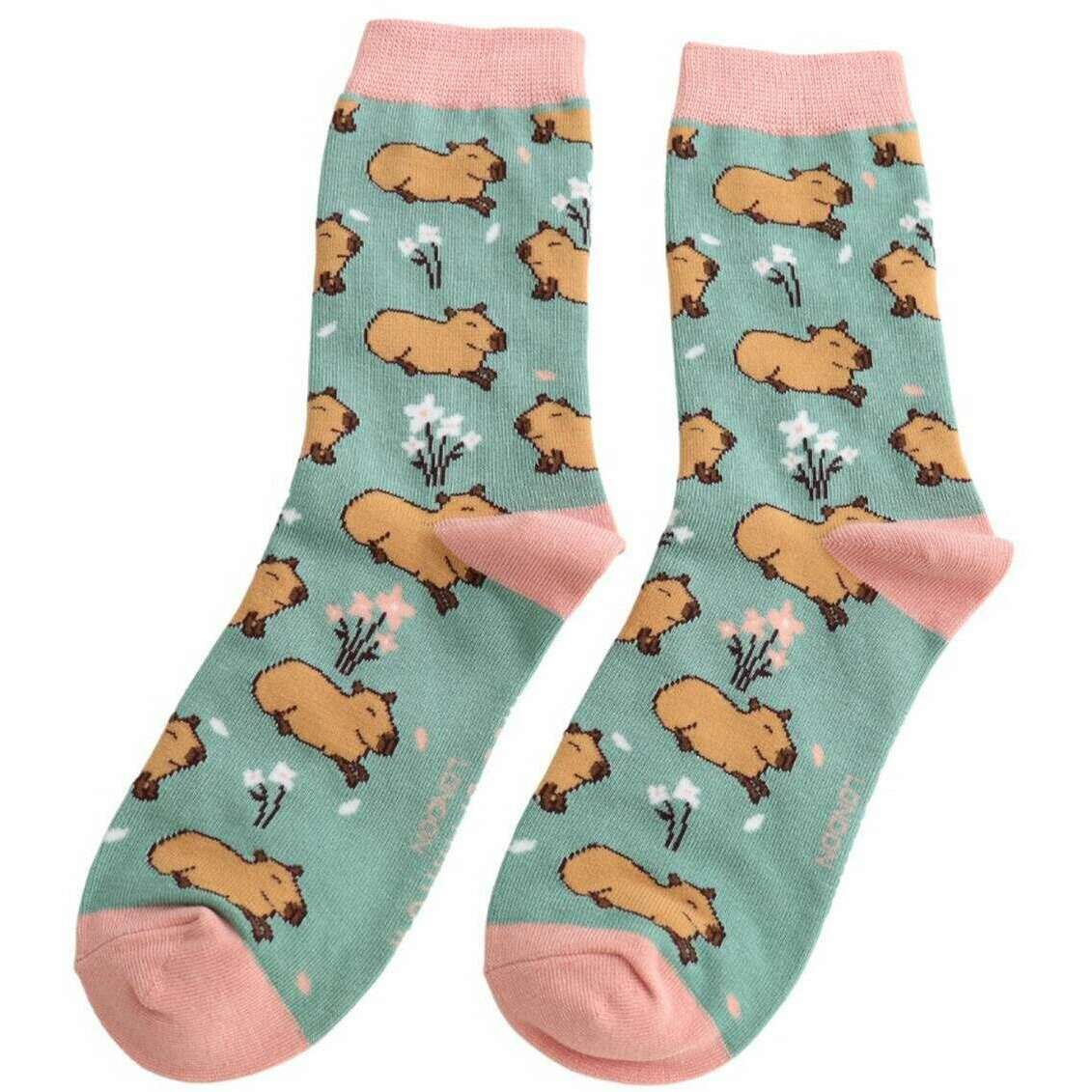 Miss Sparrow London Cute Capybara Bamboo Socks - Grøn