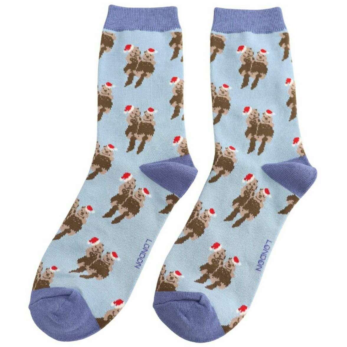 Miss Sparrow London Festive Otters Bamboo Socks - Pudderblå