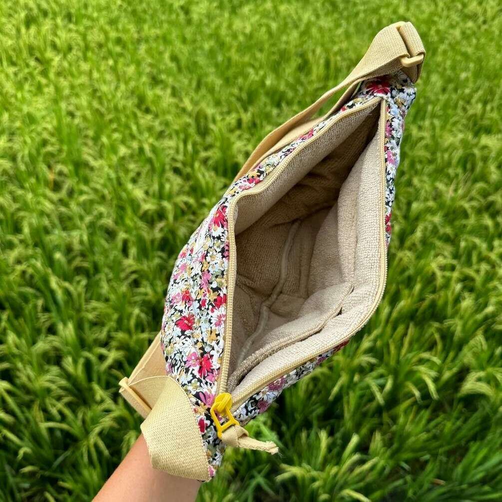 • Justerbar skulderrem, lynlåslukning, indvendige lommer, quiltet ydre, produktbranding udvendigt
