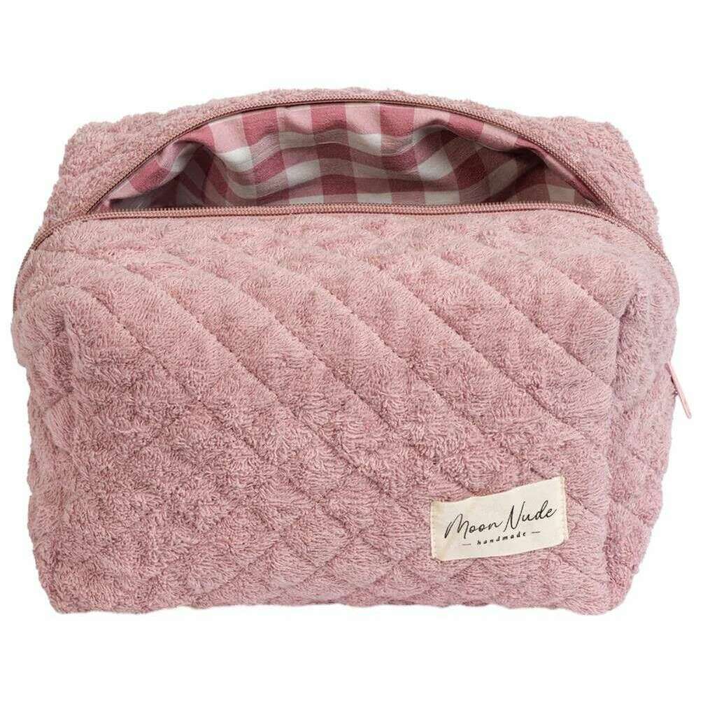 Designer Moon Nude har bragt dig denne 100% bomuldstaske til kvinder med pink/hvide toner. Den måler 15 cm (højde) x 25 cm (bredde) x 15 cm (dybde). Det anbefales at vaske i hånden i koldt vand med et mildt rengøringsmiddel, eller maskinvask med vrangen ud på en skånsom cyklus. for at holde denne taske i god stand. Alle taskerne kommer komplet med moon nude emballage. Moon Nude Blush Large Makeup Bag - Pink/hvid er en absolut nødvendighed til dit værelse eller hverdagstaske. Denne makeuptaske vil med garanti holde alle dine mest brugte produkter sammen og sikre, samtidig med at den er stilfuld og smart med sit håndlavede quiltede design.
