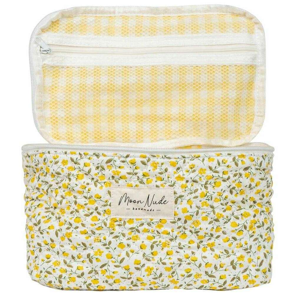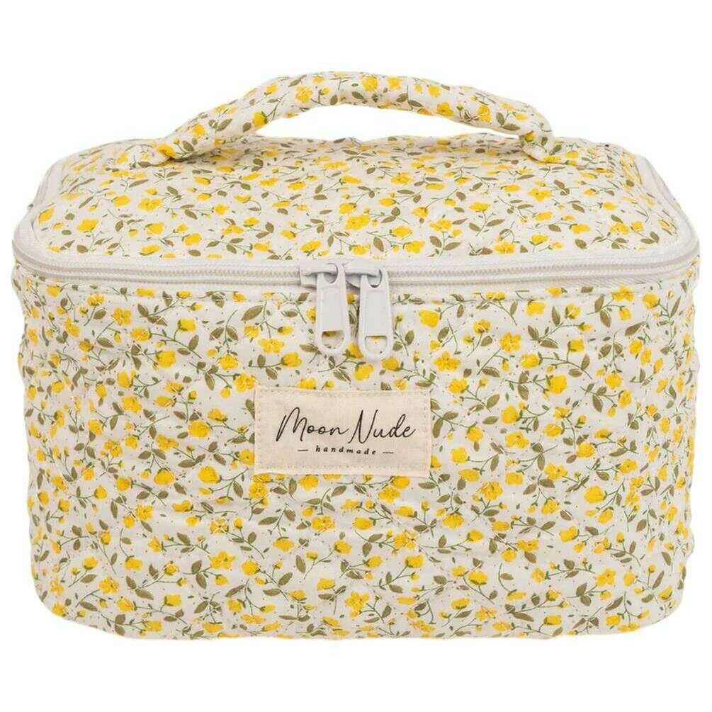 Denne ranunkelvaskepose til kvinder af mærket Moon Nude er lavet af 100% bomuld og fremvises i hvid. Den måler 16 cm (højde) x 22 cm (bredde) x 14 cm (dybde). Det anbefales at vaske i hånden i koldt vand med et mildt rengøringsmiddel, eller maskinvask med vrangen ud på en skånsom cyklus. for at holde denne taske i god stand. Alle taskerne kommer komplet med moon nude emballage. Moon Nude Buttercup Vanity Bag - Hvid/Gul er en absolut nødvendighed til rejser eller hverdagsbrug. Denne vasketøjstaske holder med garanti al din makeup eller hudpleje ét sted, samtidig med at den er stilfuld og moderigtig med sit håndlavede quiltede design.