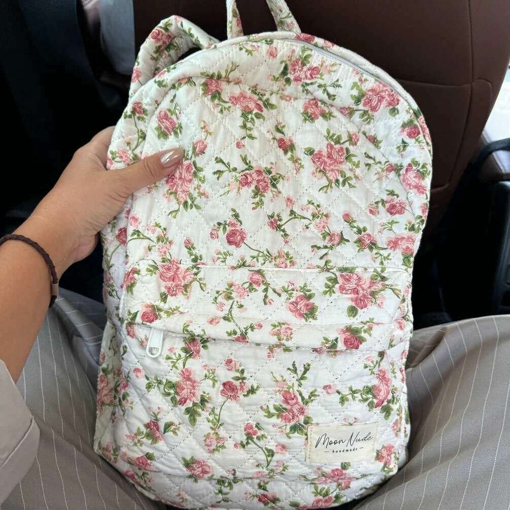 Denne vellavede rosa rygsæk til kvinder fra Moon Nude kommer i en hvid/pink/grøn farve og er fremstillet af 100% bomuld. Den måler 40 cm (højde) x 28 cm (bredde) x 13 cm (dybde). Det anbefales at vaske i hånden i koldt vand med et mildt rengøringsmiddel, eller maskinvask med vrangen ud på en skånsom cyklus. for at holde denne taske i god stand. Alle taskerne kommer komplet med moon nude emballage. Moon Nude Roze Rygsæk - Hvid/Pink/Grøn har et smukt håndlavet quiltet design. Perfekt til på farten, uanset om det er til arbejde eller hverdagsbrug. Denne taske har en udvendig lomme med lynlås, perfekt til alle småting, du måtte have. Interiøret er rummeligt og byder på et bagrum til din bærbare computer eller tablet.