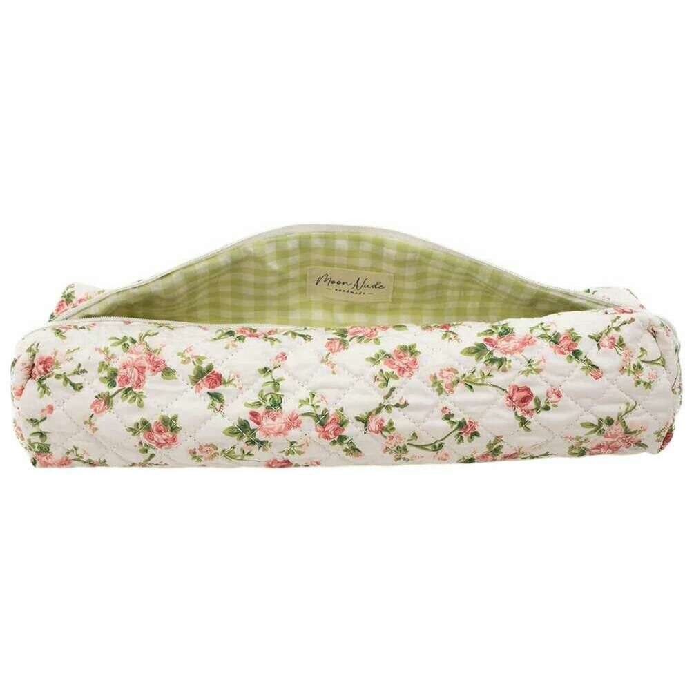 Perfekt til kvinder er denne Moon Nude hvid/pink/grøn rosa hårværktøjstaske, den er også lavet af 100% bomuld. Den måler 8 cm (højde) x 40 cm (bredde) x 12 cm (dybde). Det anbefales at vaske i hånden i koldt vand med et mildt rengøringsmiddel, eller maskinvask med vrangen ud på en skånsom cyklus. for at holde denne taske i god stand. Alle taskerne kommer komplet med moon nude emballage. Moon Nude Roze Hair Tool Bag - Hvid/Pink/Grøn er en absolut nødvendighed til dit værelse eller rejsetaske. Denne hårværktøjstaske holder med garanti alle dine hårprodukter samlet og sikker, samtidig med at den er stilfuld og smart med sit håndlavede quiltede design.