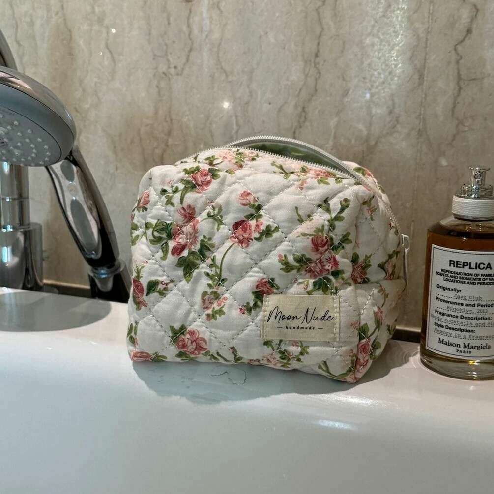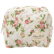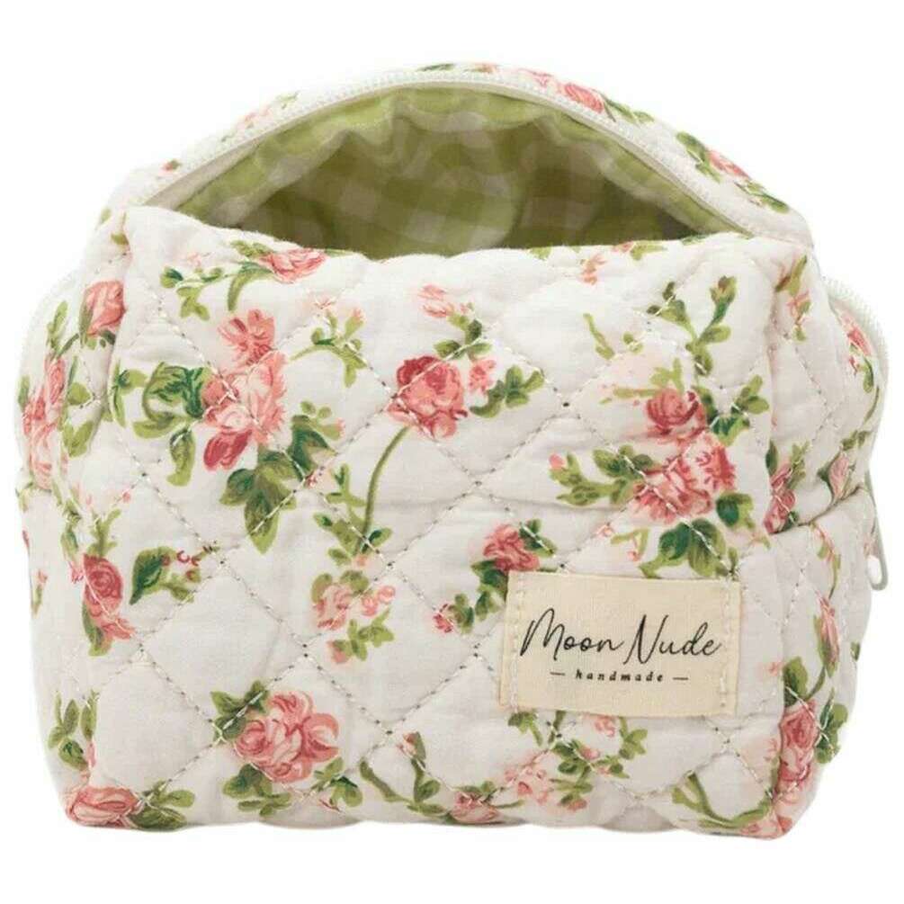 Bragt til dig af mærket Moon Nude, denne hvide/lyserøde/grønne mini-makeuptaske til kvinder er lavet af 100% bomuld. Den måler 13 cm (højde) x 15 cm (bredde) x 11 cm (dybde). Det anbefales at vaske i hånden i koldt vand med et mildt rengøringsmiddel, eller maskinvask med vrangen ud på en skånsom cyklus. for at holde denne taske i god stand. Alle taskerne kommer komplet med moon nude emballage. Moon Nude Roze Mini Makeup Bag - Hvid/Pink/Grøn er en absolut nødvendighed til dit værelse eller hverdagstaske. Denne makeuptaske vil med garanti holde alle dine mest brugte produkter sammen og sikre, samtidig med at den er stilfuld og smart med sit håndlavede quiltede design.