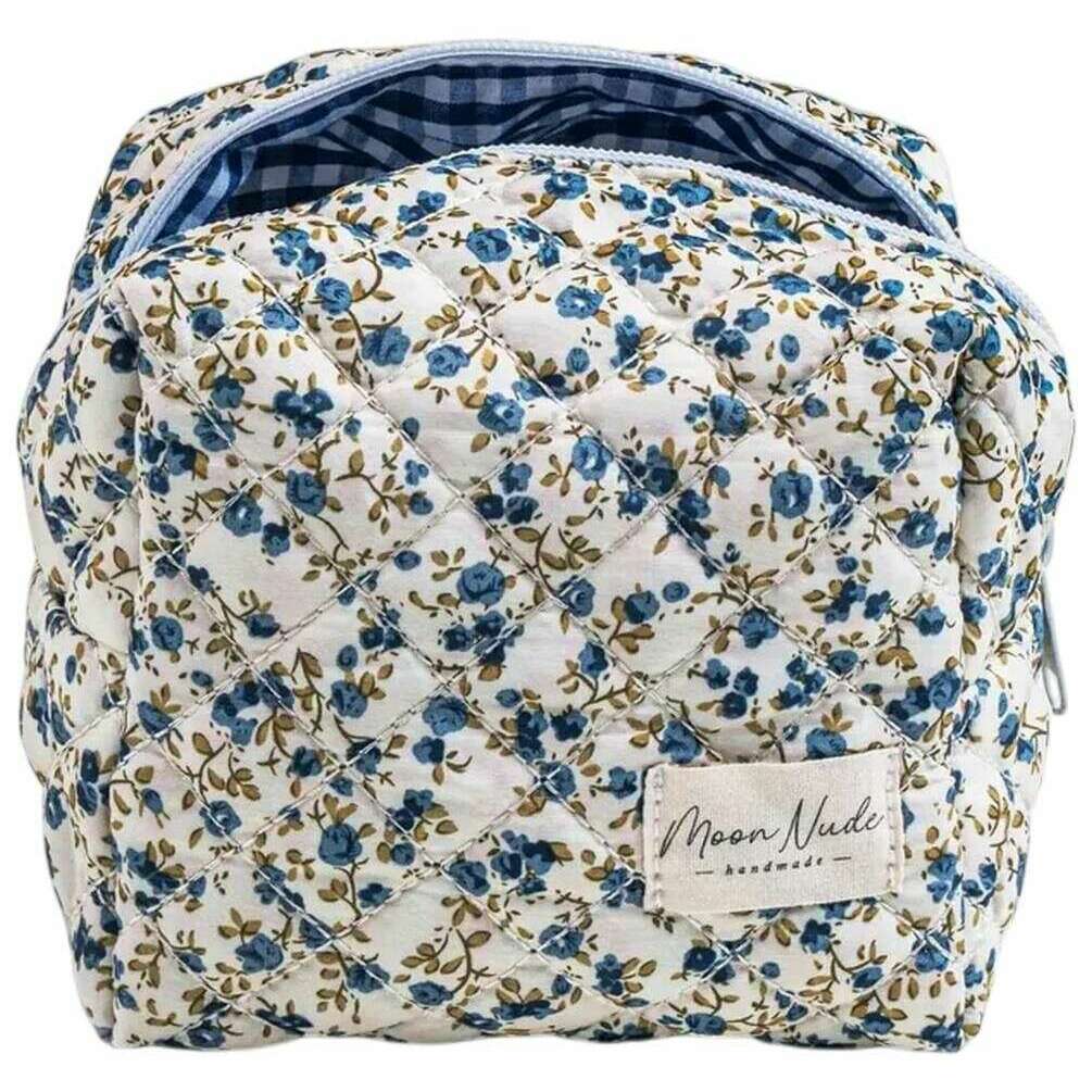 Denne mini-makeuptaske til kvinder fra mærket Moon Nude er lavet af 100% bomuld og fremvises i blåt. Den måler 13 cm (højde) x 15 cm (bredde) x 11 cm (dybde). Det anbefales at vaske i hånden i koldt vand med et mildt rengøringsmiddel, eller maskinvask med vrangen ud på en skånsom cyklus. for at holde denne taske i god stand. Alle taskerne kommer komplet med moon nude emballage. Moon Nude Spring Mini Makeup Bag - Blå/Grøn er en absolut nødvendighed til dit værelse eller hverdagstaske. Denne makeuptaske vil med garanti holde alle dine mest brugte produkter sammen og sikre, samtidig med at den er stilfuld og smart med sit håndlavede quiltede design.