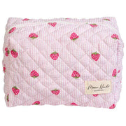 Denne store jordbær-makeuptaske til kvinder er lavet af 100% bomuld, med en pink farve og er fra mærket Moon Nude. Den måler 15 cm (højde) x 25 cm (bredde) x 15 cm (dybde). Det anbefales at vaske i hånden i koldt vand med et mildt rengøringsmiddel, eller maskinvask med vrangen ud på en skånsom cyklus. for at holde denne taske i god stand. Alle taskerne kommer komplet med moon nude emballage. Moon Nude Strawberry Large Makeup Bag - Pink/Red er en absolut nødvendighed til dit værelse eller hverdagstaske. Denne makeuptaske vil med garanti holde alle dine mest brugte produkter sammen og sikre, samtidig med at den er stilfuld og smart med sit håndlavede quiltede design.