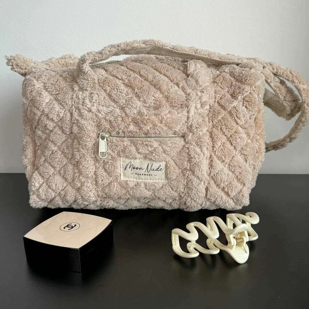 Perfekt til kvinder er denne Moon Nude beige teddy mini duffeltaske, den er også lavet af 100% bomuld. Den måler 18 cm (højde) x 31 cm (bredde) x 18 cm (dybde). Det anbefales at vaske i hånden i koldt vand med et mildt rengøringsmiddel, eller maskinvask med vrangen ud på en skånsom cyklus. for at holde denne taske i god stand. Alle taskerne kommer komplet med moon nude emballage. Moon Nude Teddy Mini Duffel Bag - Beige har et smukt håndlavet quiltet design. Denne taske har en udvendig lynlåslomme, et rummeligt interiør og to store håndtag, perfekt til en afslappet ude-taske eller som gave.