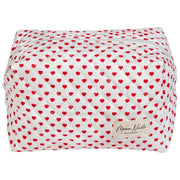 Ved hjælp af hvid 100 % bomuld er denne store valentine makeuptaske fra Moon Nude perfekt til kvinder og et must have. Den måler 15 cm (højde) x 25 cm (bredde) x 15 cm (dybde). Det anbefales at vaske i hånden i koldt vand med et mildt rengøringsmiddel, eller maskinvask med vrangen ud på en skånsom cyklus. for at holde denne taske i god stand. Alle taskerne kommer komplet med moon nude emballage. Moon Nude Valentine Large Makeup Bag - Hvid/Rød er en absolut nødvendighed til dit værelse eller hverdagstaske. Denne makeuptaske vil med garanti holde alle dine mest brugte produkter sammen og sikre, samtidig med at den er stilfuld og smart med sit håndlavede quiltede design.