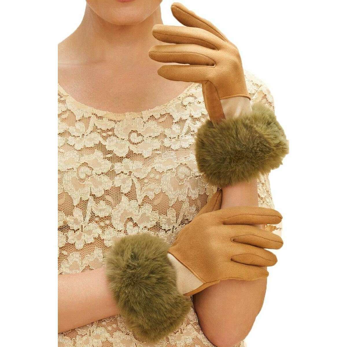 Pulver bettina handsker - sand beige/grøn