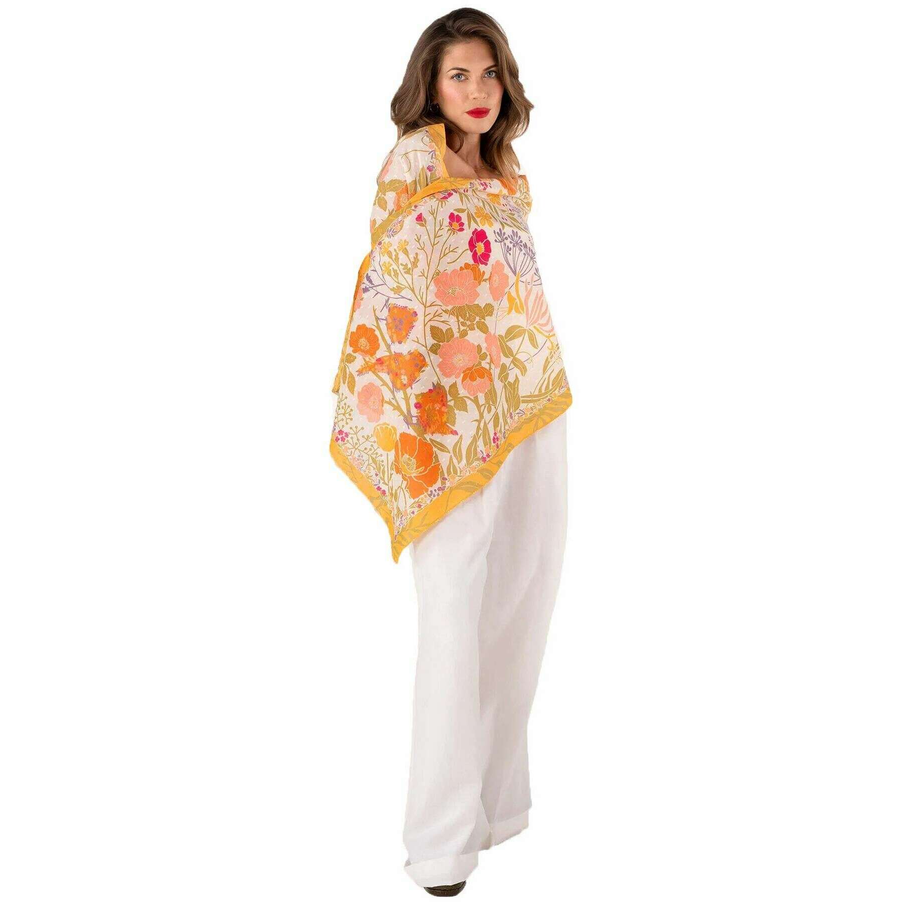 Pulverfugle i blomstrende bomuldstørklæde - gul/creme/beige