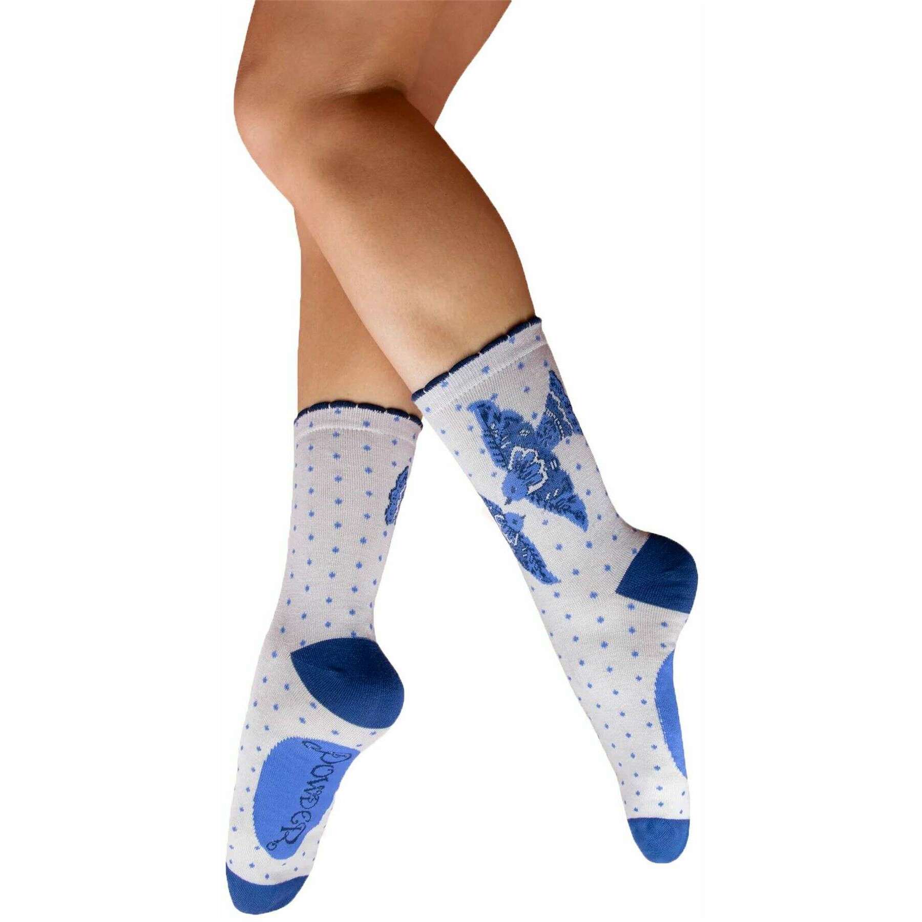 Powder Blue Birds Ankelstrømper - Hvid/Blå