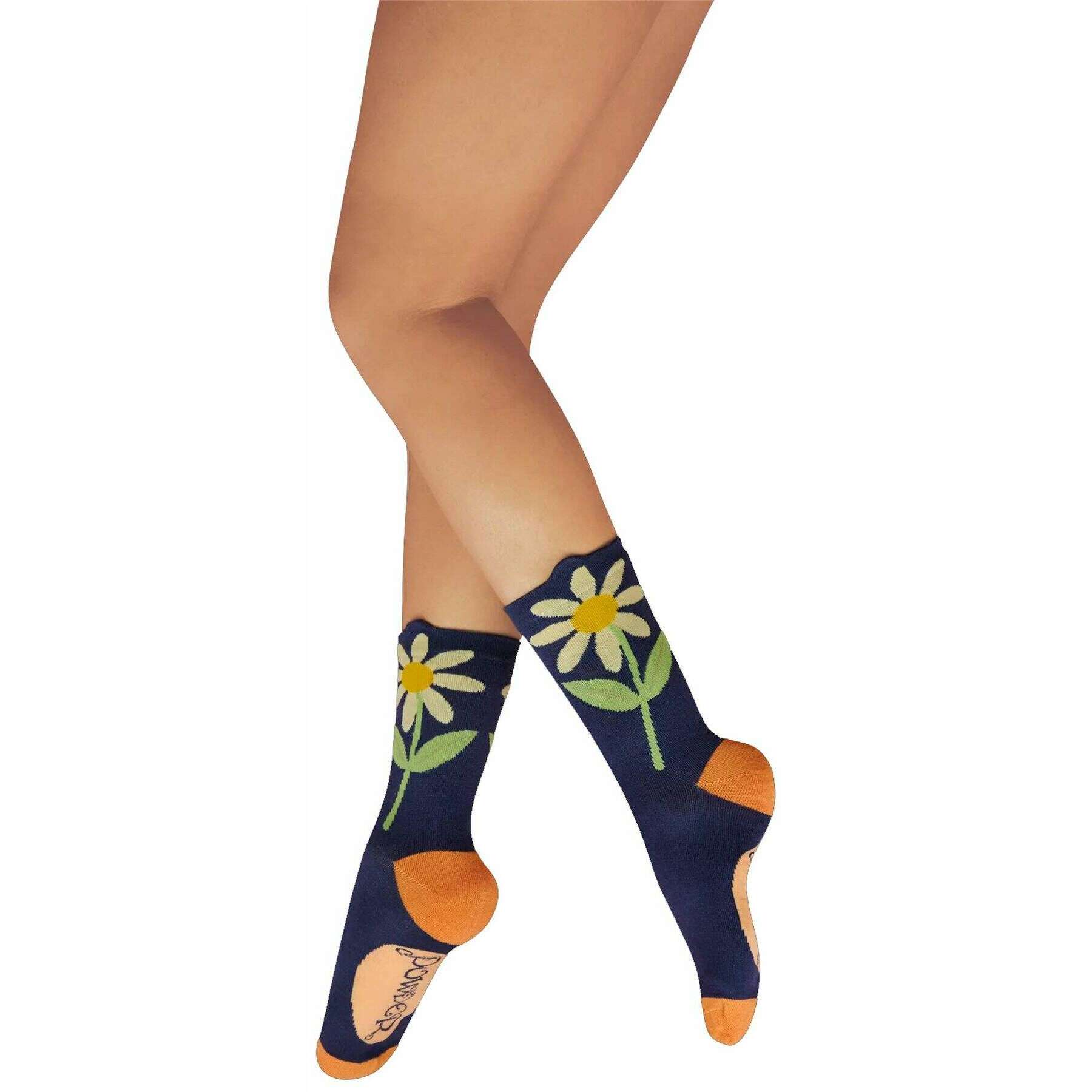 Powder Daisy i Navy Flower Top Ankelstrømper - Navy/Orange/Grøn