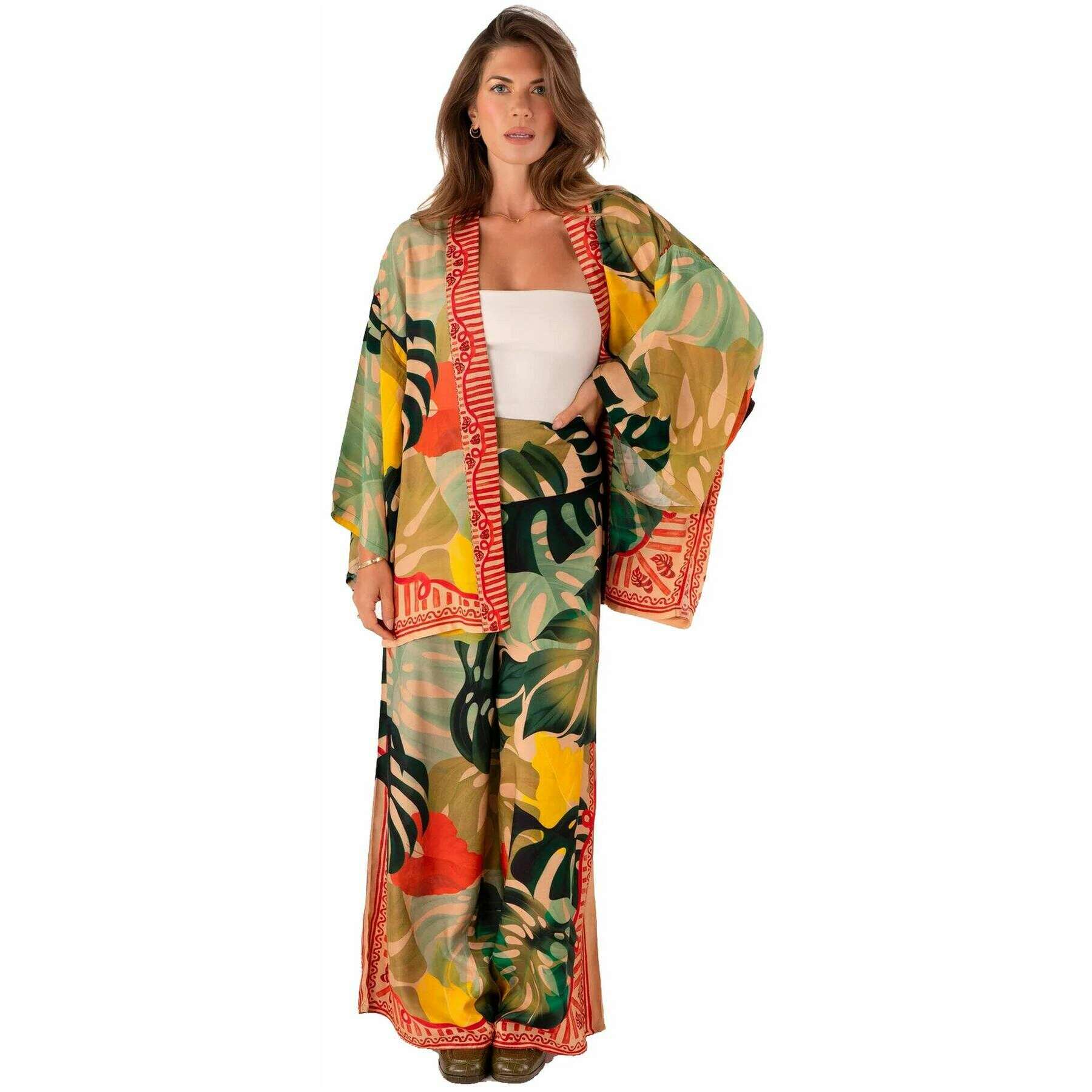 Powder Exotic Leaves Kimono-jakke - Grøn/Beige/Gul