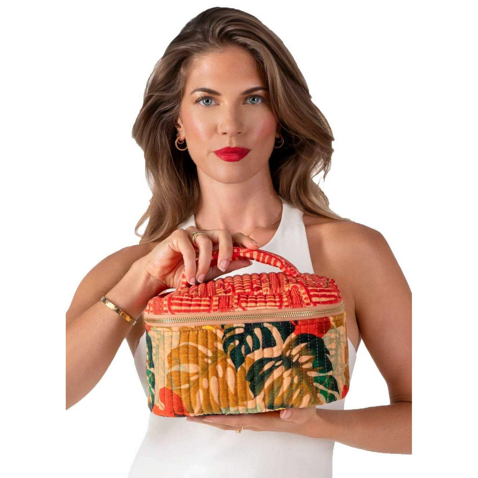 Powder Exotic Leaves Quiltet Vanity Case - Rød/Grøn/Beige